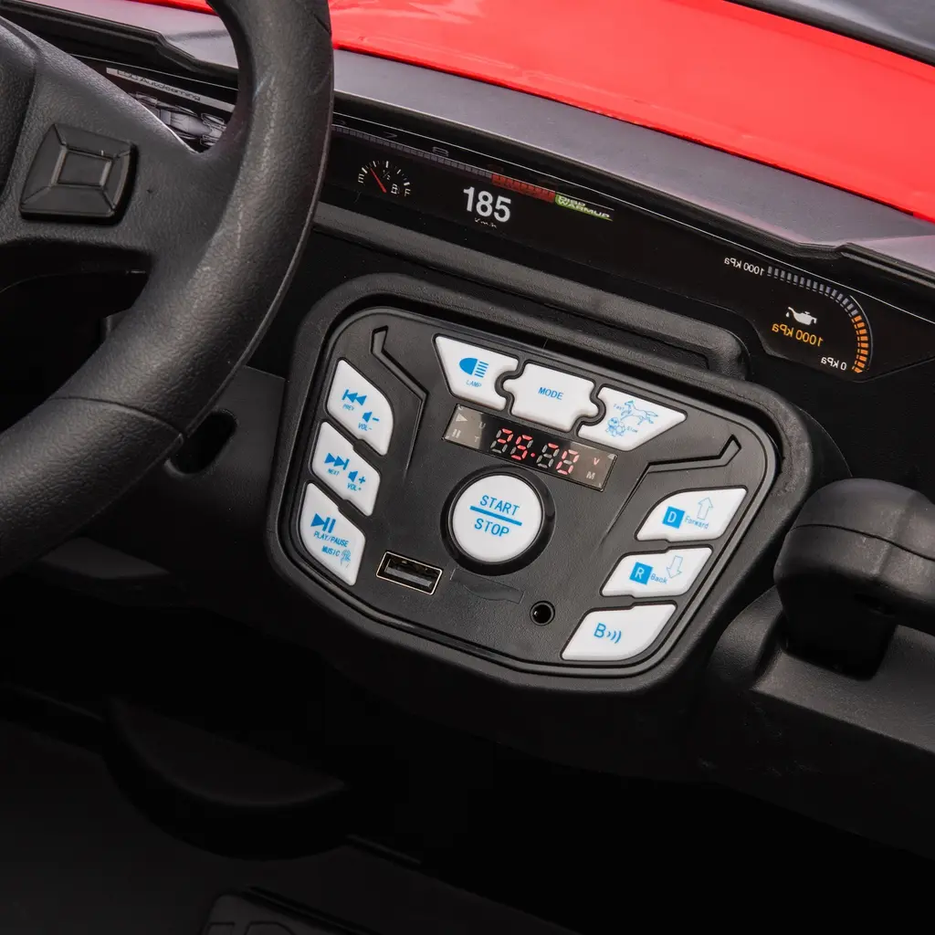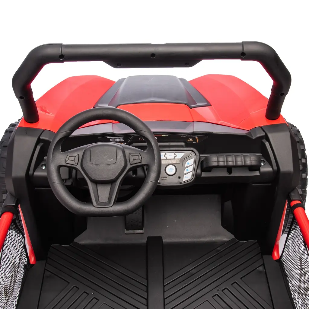 Product Overview:Let your child explore with the 24V Two-Seater Kids Ride-On UTV. Built for kids aged 3 and up, this UTV is powered by dual 200W motors and equipped with a four-wheel suspension system for a smooth ride. Parents can control the ride with a remote for added safety. Complete with Bluetooth, MP3 capabilities, LED lights, and rear storage space, this UTV offers an exciting outdoor driving experience for two kids at a time.Product Features:Specifications:Weight & Dimensions:Suitable Scenarios:Ideal for off-road adventures, providing fun and excitement on grassy fields, dirt paths, or smooth surfaces.Notes:Always supervise children while they're driving, and charge the battery fully before each use for optimal performance.