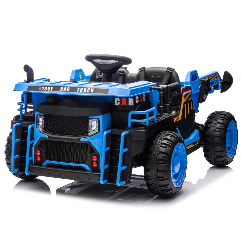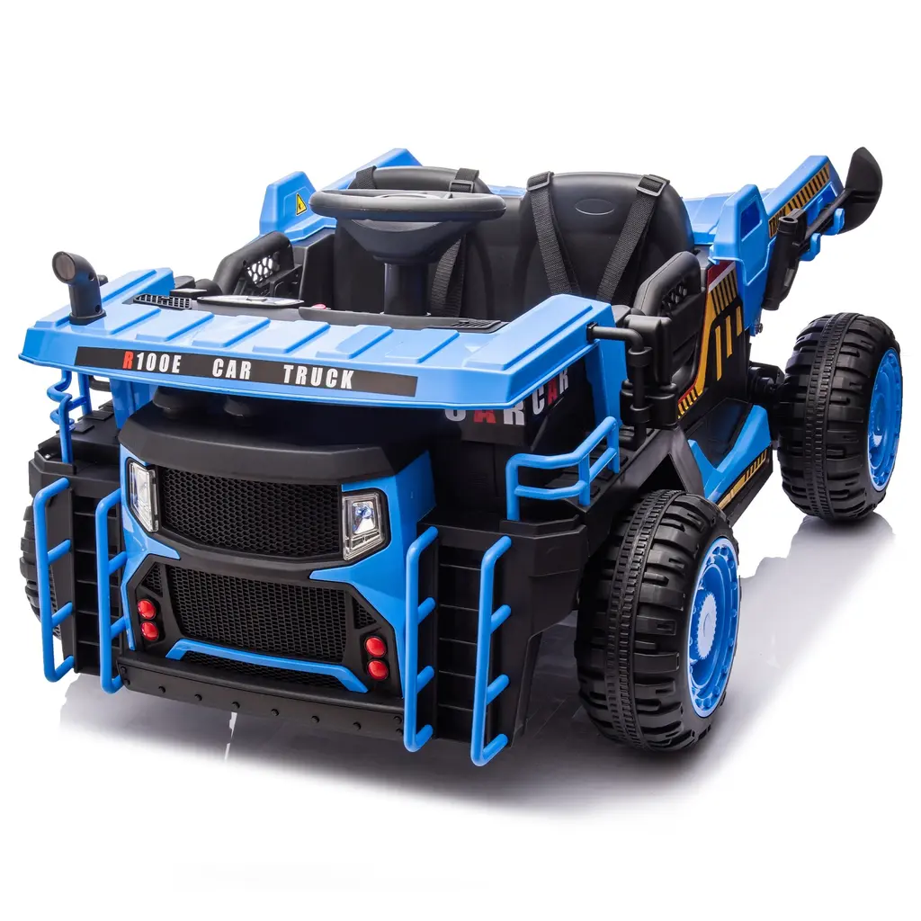 Product Overview: The 24V Two-Seater Kids Ride-On Electric Car offers an exciting and interactive driving experience for children aged 3 and up. Designed for two children to ride comfortably, this car features a 400W motor for powerful performance and speeds up to 4.97 MPH. The electric rear dump and shovel add a fun, creative touch, allowing kids to simulate construction projects or transport toys. With Bluetooth and MP3 functionality, kids can enjoy their favorite music while driving. The car also includes LED lights, a 2.4G remote control for parents, and a simple one-click steering wheel installation for easy setup. Assembled dimensions: 43.31L x 30.71W x 24.80H inches. Weight: 50.71 lbs.Product Features: Specifications: Suitable Scenarios: This 24V ride-on car is perfect for children aged 3 and up. It's ideal for both indoor and outdoor play, whether in the yard, at the park, or around the neighborhood. Great for birthday gifts or just a fun treat, the car allows for imaginative play with its electric rear dump, while also providing an authentic driving experience for young adventurers. The Bluetooth functionality and MP3 compatibility ensure entertainment during every ride.Notes: This ride-on car is designed for children aged 3+ and can support a maximum weight of 110.23 lbs. Always supervise children while they are using the car. The car includes an easy-to-assemble steering wheel, and it's recommended to charge the vehicle fully before use. The battery provides ample playtime, and regular maintenance is suggested to ensure longevity. Store the car in a dry place when not in use.