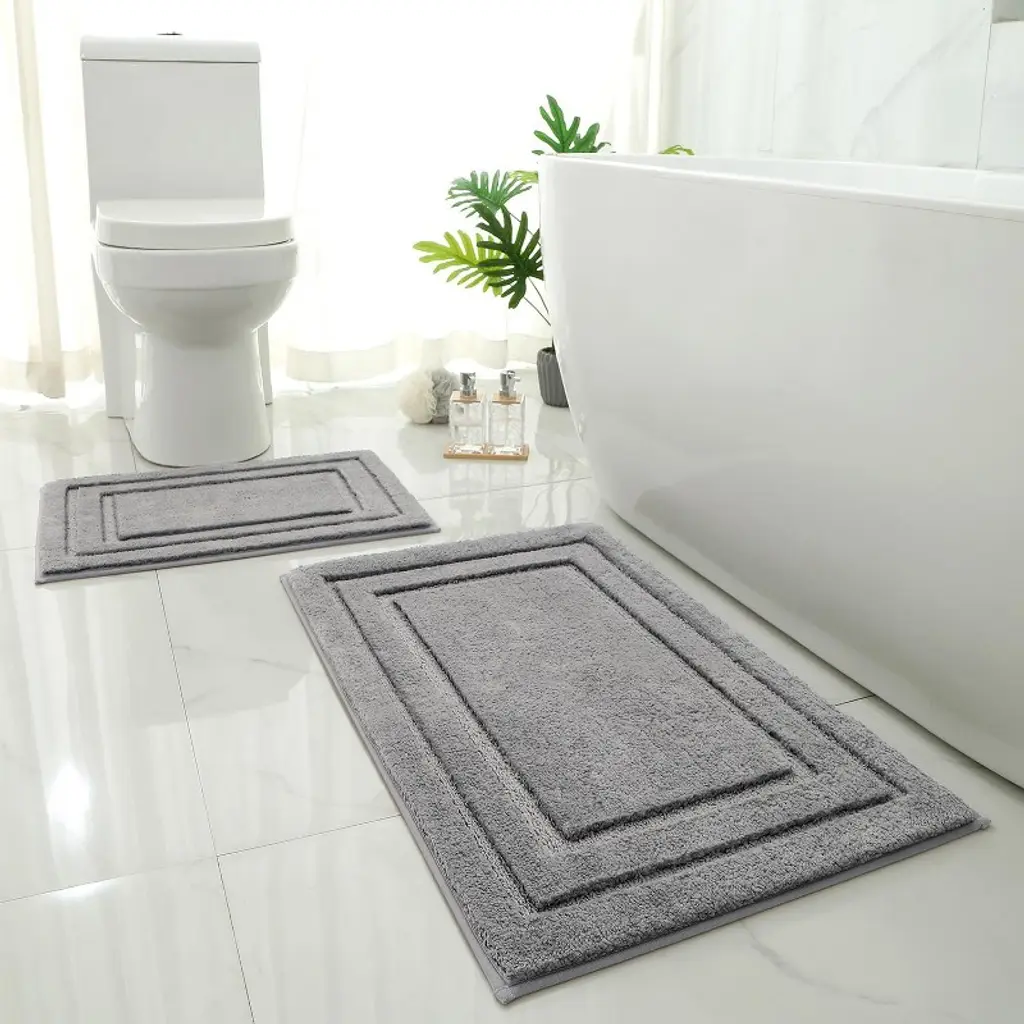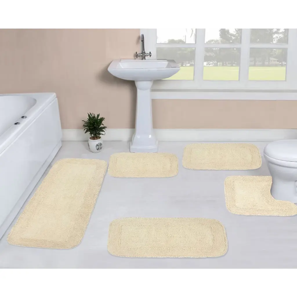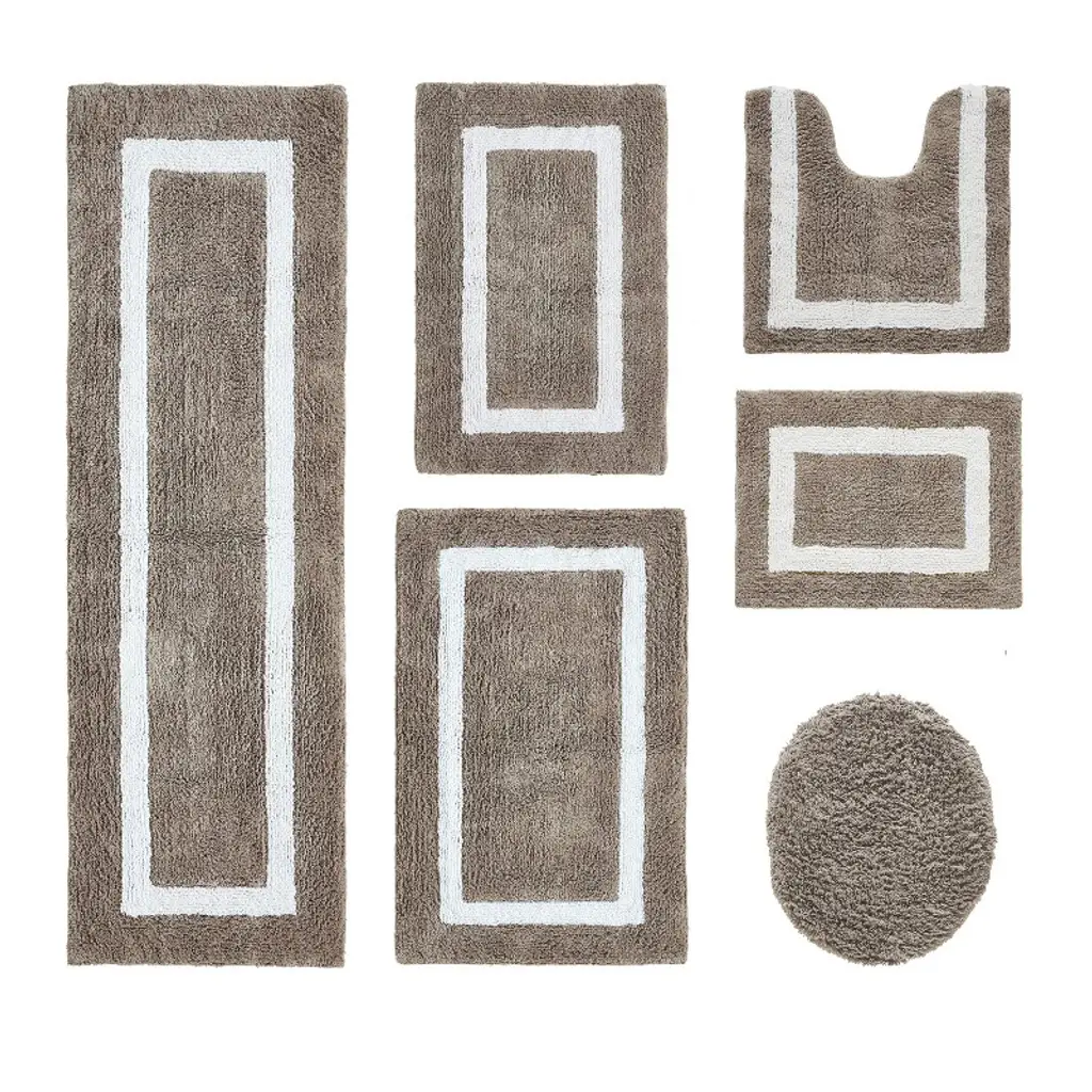 The Madison Park Amherst Cotton Tufted Bath Rug Collection provides a stylish and sophisticated look for your bathroom. Made from 100% tufted cotton, this rug is machine washable and incredibly soft for your feet to rest on. With its skid resistant reverse, the neutral color palette, and border design of this cotton bath rug is sure to bring new life into your bathroom decor. Multiple sizes and colors are available and sold separately, perfectly providing endless style options to suit any bathroom size and decor!