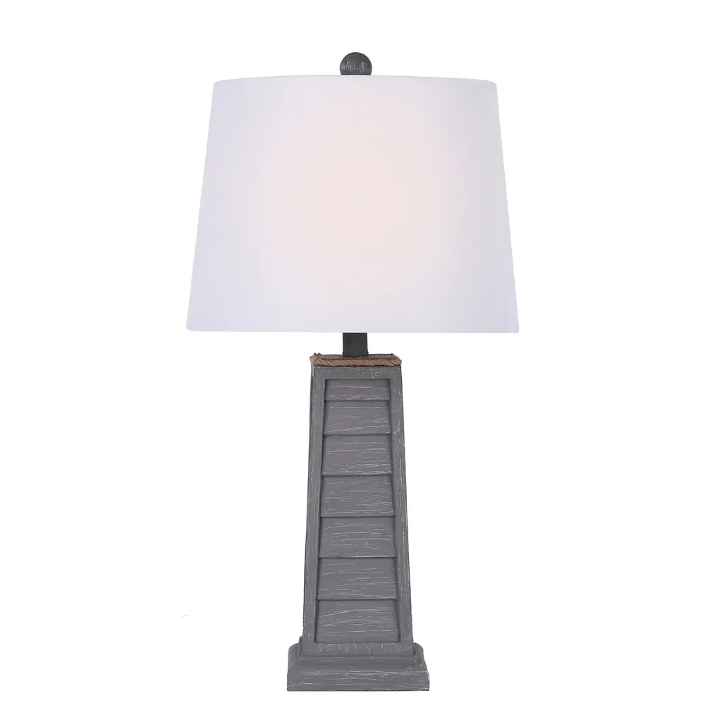 The 25 in. Louvered Shutter Table Lamp in an Grey Finish is sure to instantly charm. Attention to detail can be found in the striking look and stunning design that will add a subtle Transitional flare to your favorite space. The Grey finish with Rope Trim is among the most desired in homes today! Lamp includes a designer shade made in a décor friendly tone of white. Light comes complete with an easy to use On/Off switch. This item takes 1 bulb with a maximum wattage of 100 (Not Included.) Lamp is UL and CSA Listed. Showcase your discerning tastes brilliantly with this item. The stylized, Weathered Shutter look possesses its own presence while illuminating your exquisite decorating tastes. If you enjoy the graceful lines of Transitional designs, this is the lamp for you! Bring this item home! You will be glad you did!