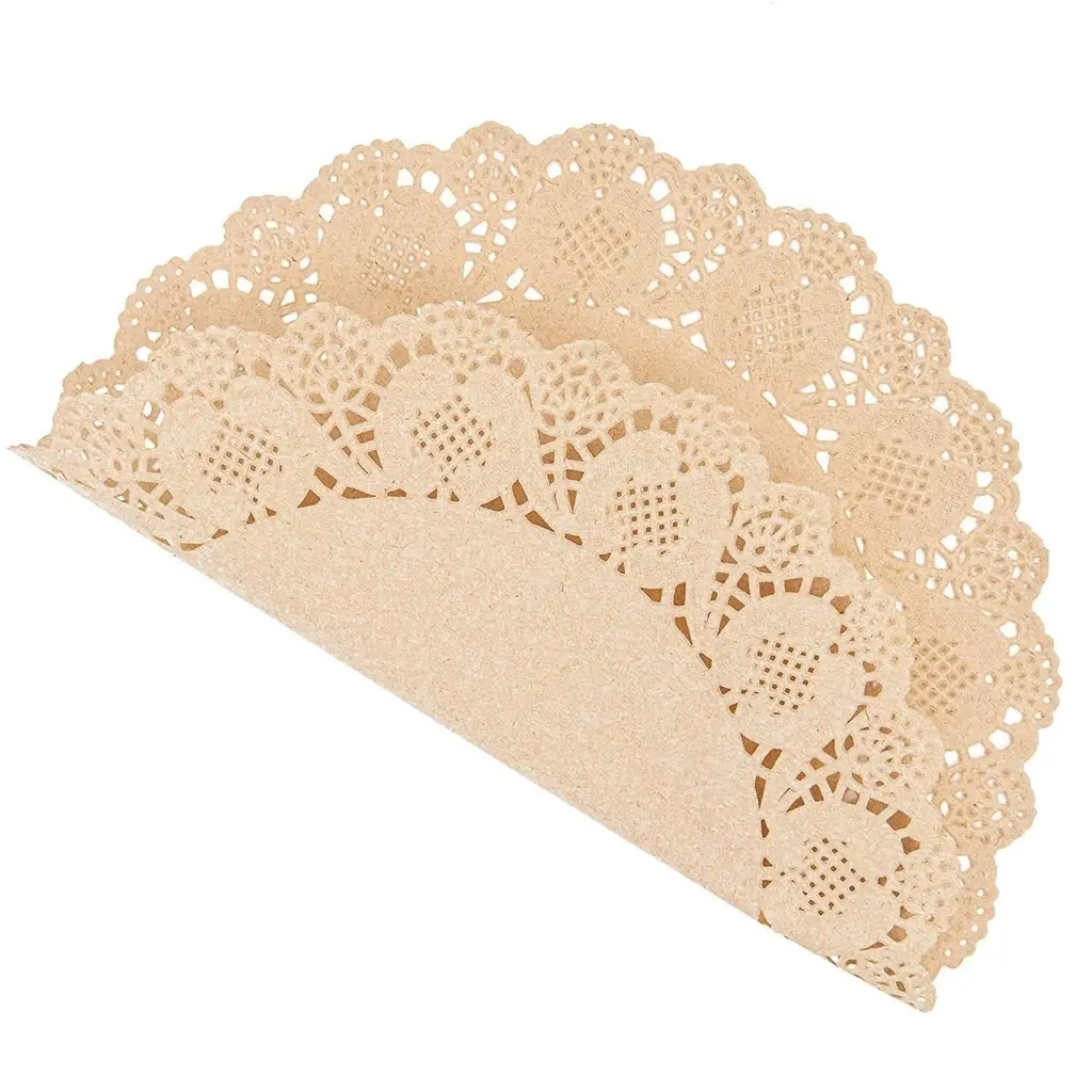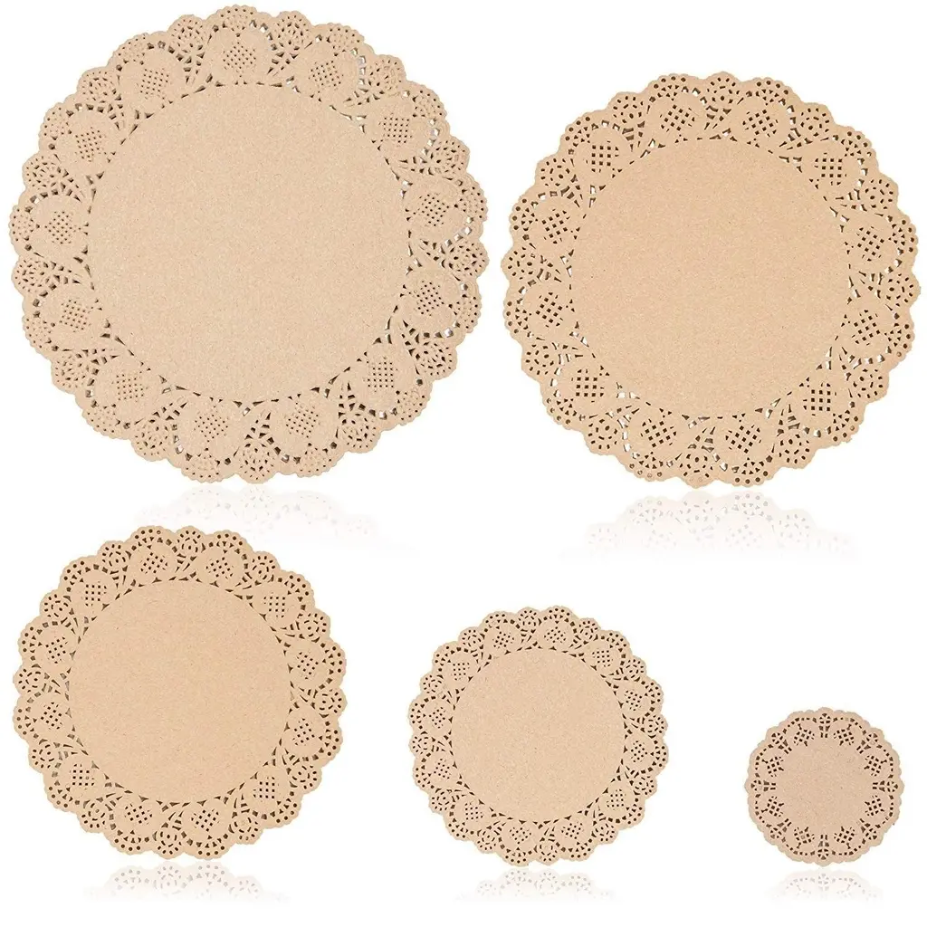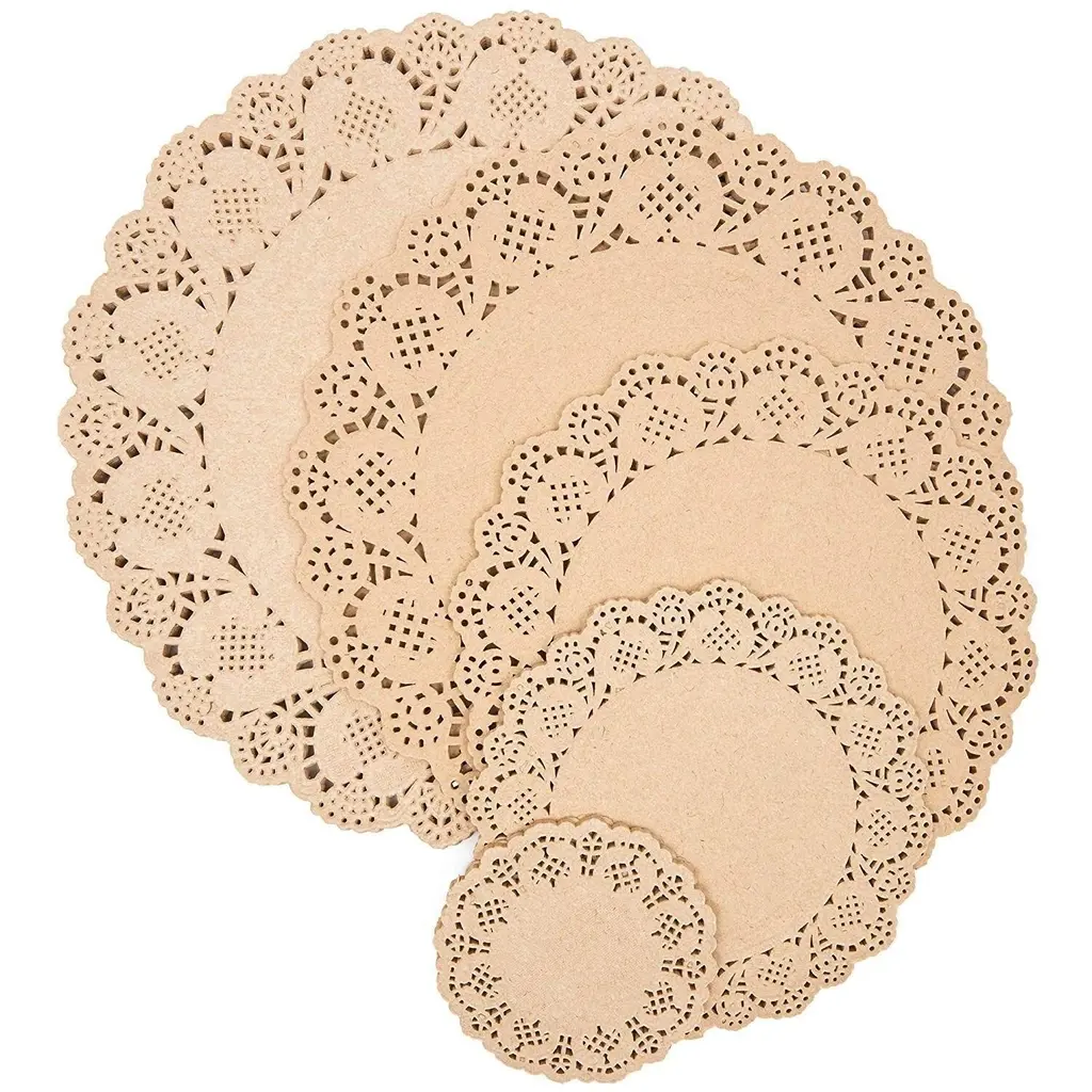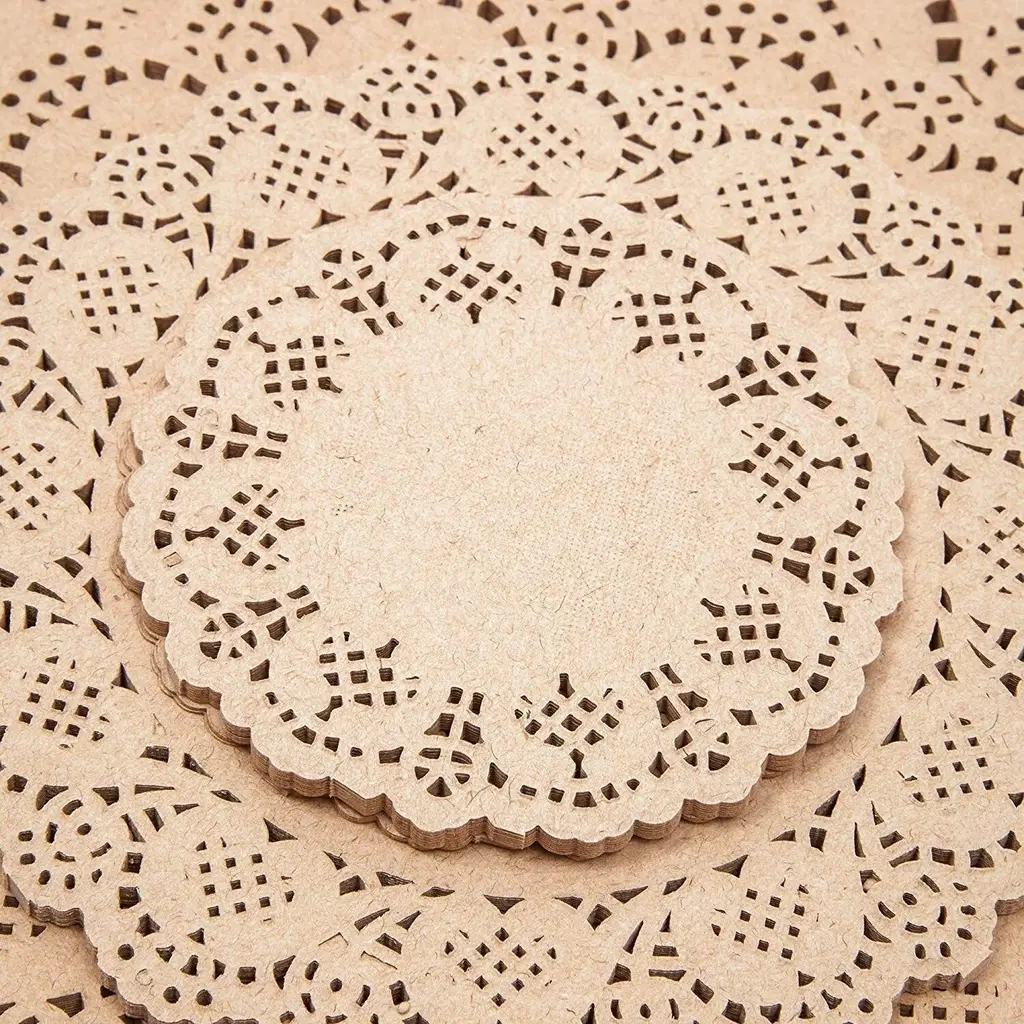 250pcs Brown Round Paper Doilies Lace For Art Craft Assorted For Party Decor - Brown