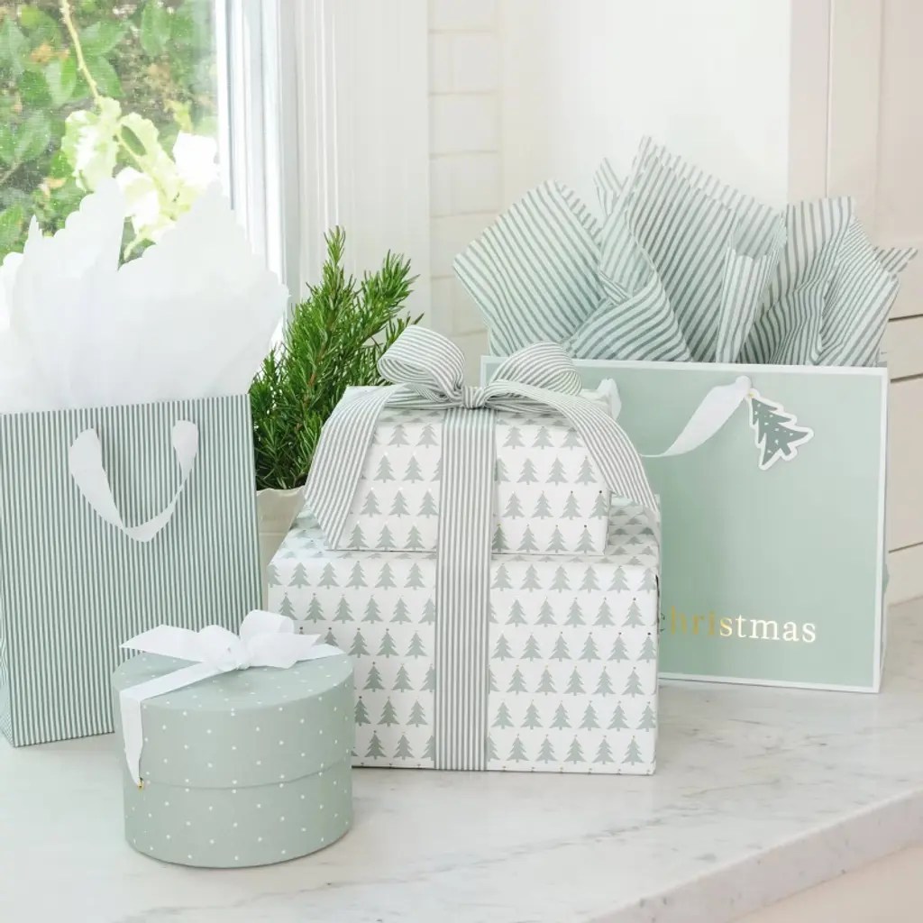 25ct Christmas Tree And Striped Tissue Paper Green/white - Sugar Paper™ + Target