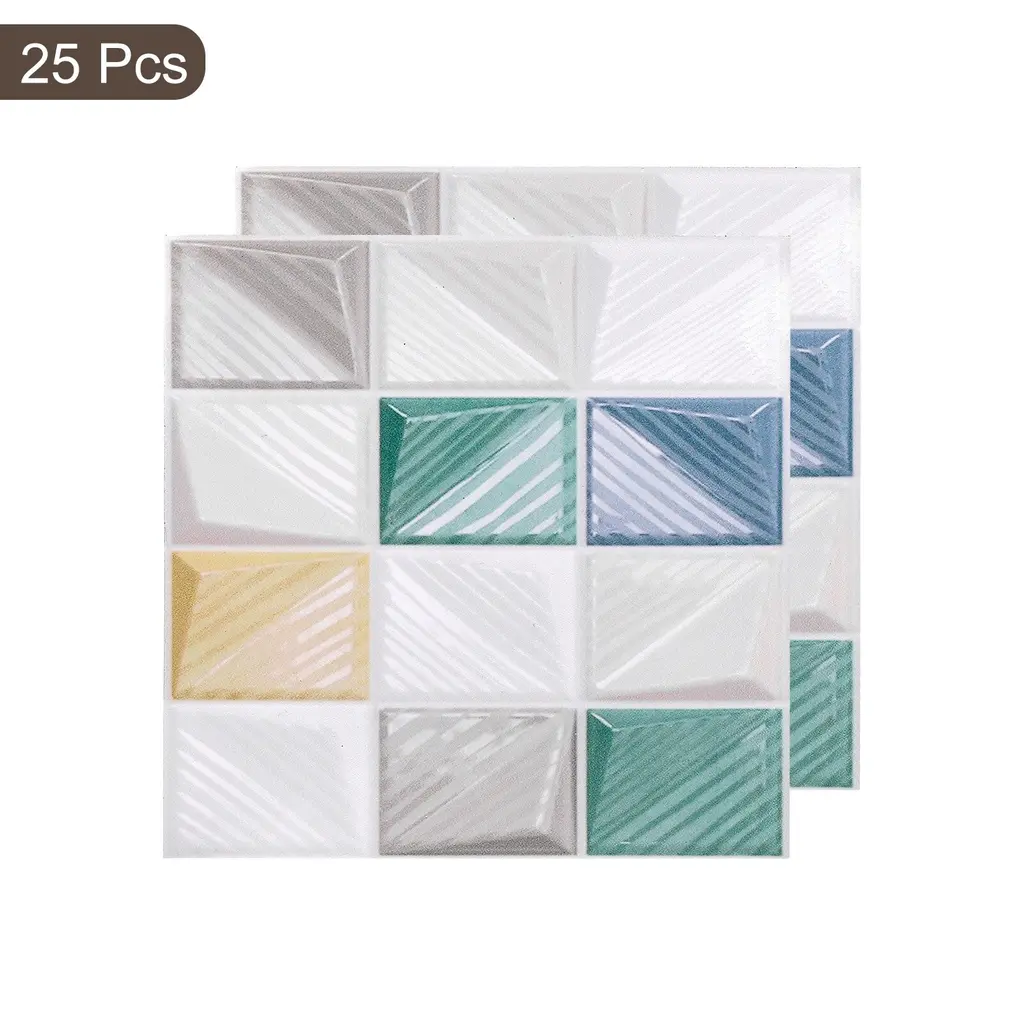 25pcs Peel And Stick Tiles Backsplash, 4"x4" Mosaic Tile Stickers, Beige White - Beige+white - Beige+white
