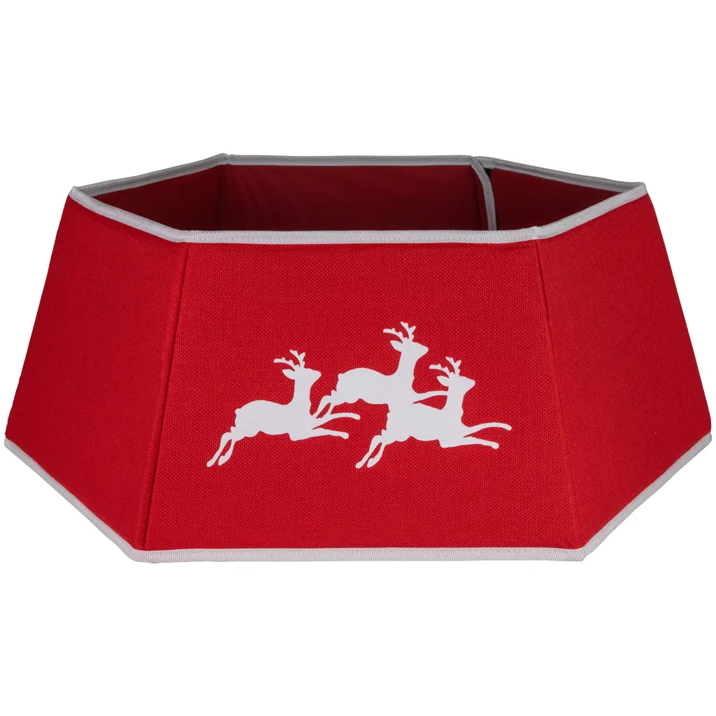 26" Burlap With Reindeer Hexagonal Christmas Tree Collar - Beige