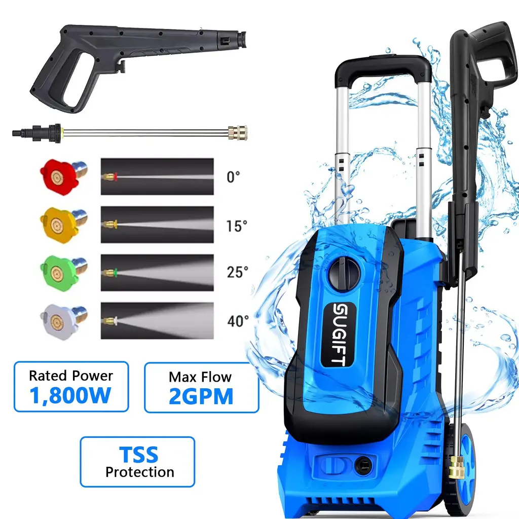 2600 Max Psi 1.8 Gpm Electric High Pressure Washer, Cleans Cars/fences/patios - Blue