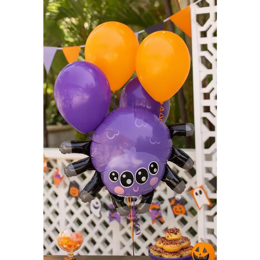 Creep into the Halloween spirit with this 27" Watchful Eyes Spider Balloon set! Featuring a bold purple spider design with spooky eye details, this balloon makes a standout decoration for parties, haunted houses, or festive home displays. The set includes four coordinating 11" latex balloons to complete the look, giving you an easy way to elevate your Halloween décor. Perfect for creating a creepy yet fun atmosphere, this spider balloon is a great choice for photo backdrops, trick-or-treat areas, or adding a touch of eerie charm to any celebration. Its vibrant color and playful design make it a versatile decoration that’s sure to capture attention.