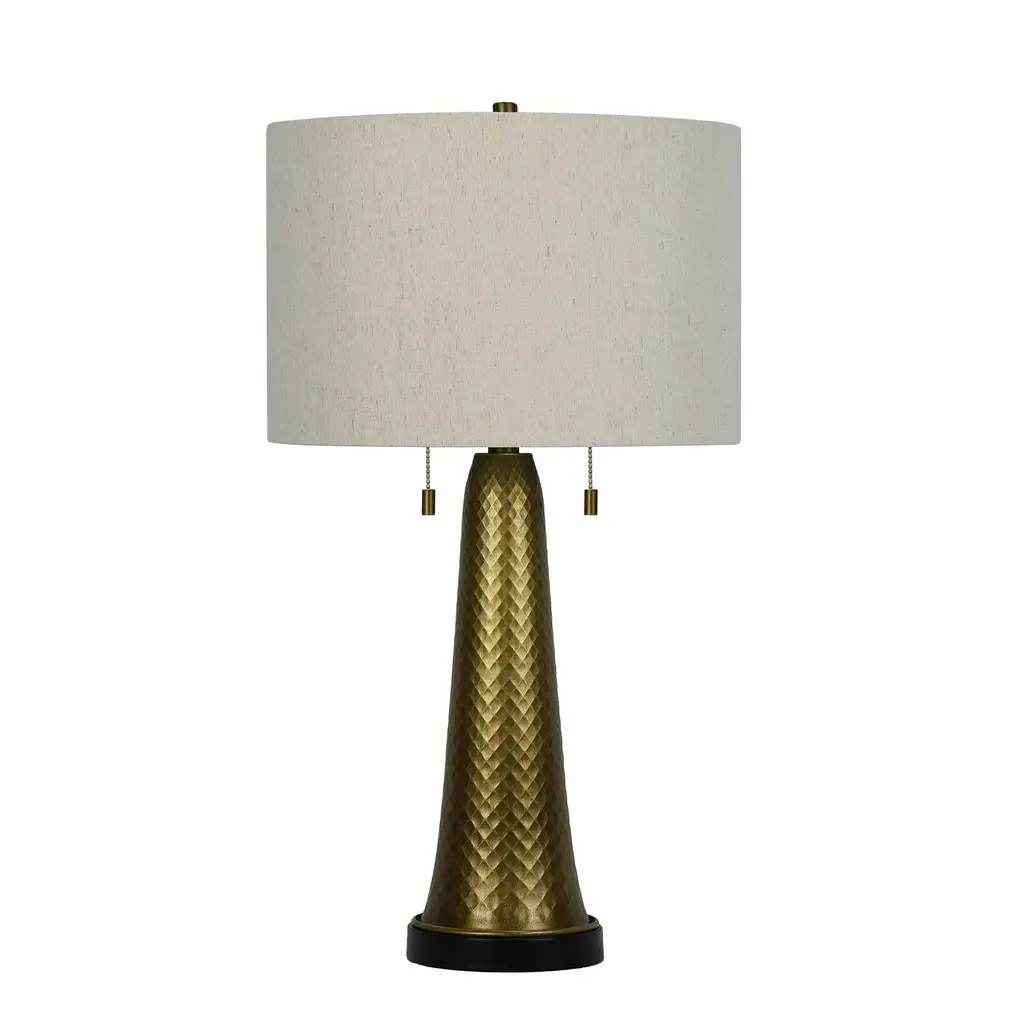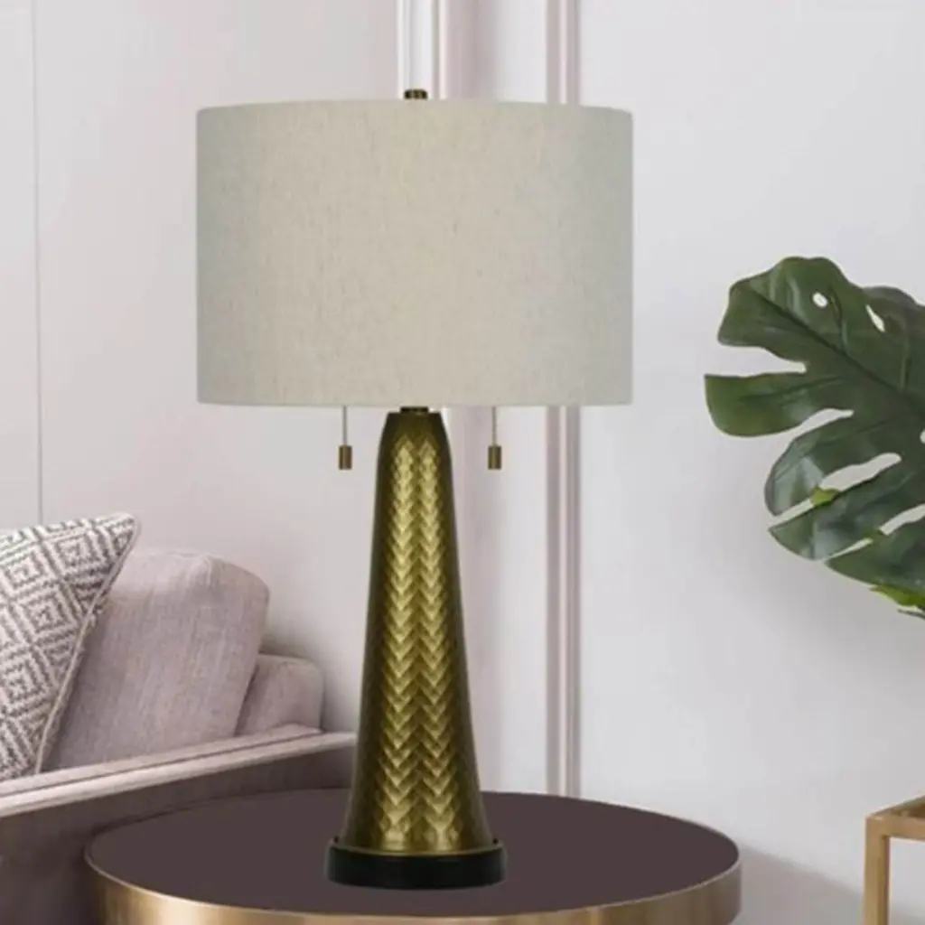 This 27" metal table lamps stylized antique gold classic tapered column look possesses its own presence while illuminating your exquisite decorating tastes. Showcase your discerning tastes brilliantly with this item. With its double pull chain switch you can adjust the amount of light needed. It uses 2-60W bulbs(not included) and is UL & CSA listed. If you enjoy the graceful lines of modern designs, this is the lamp for you! Bring this item home! You will be glad you did!
