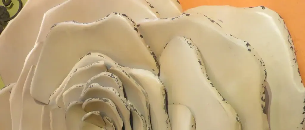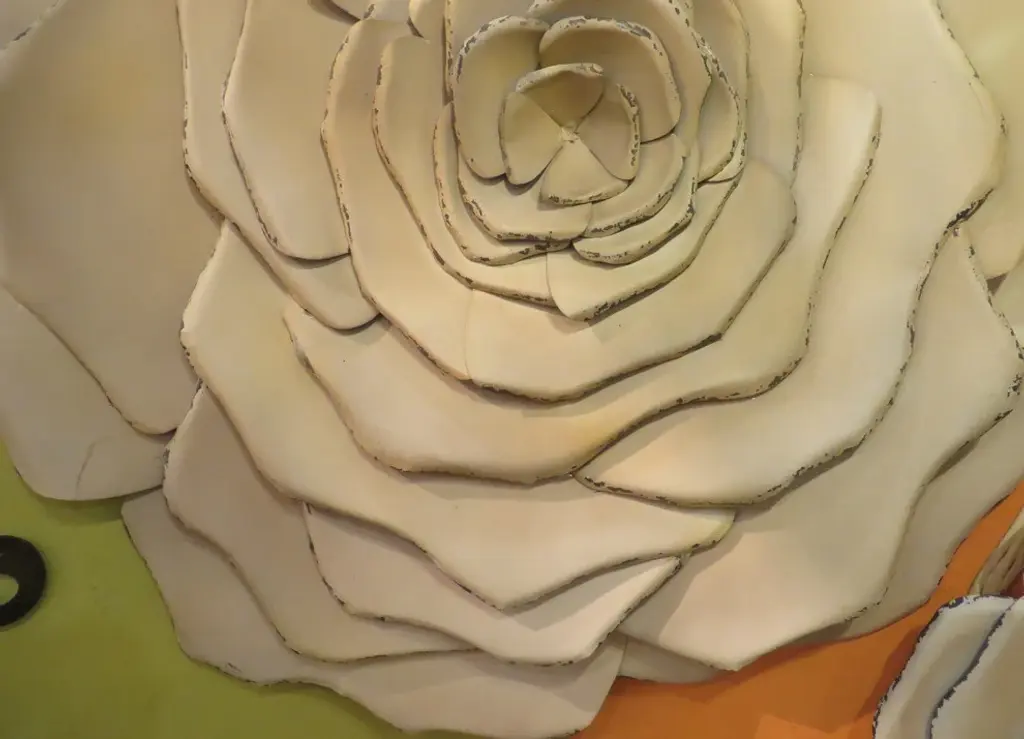 27" Metal Wall Flower Blossom, Art White Cream Rose Decor