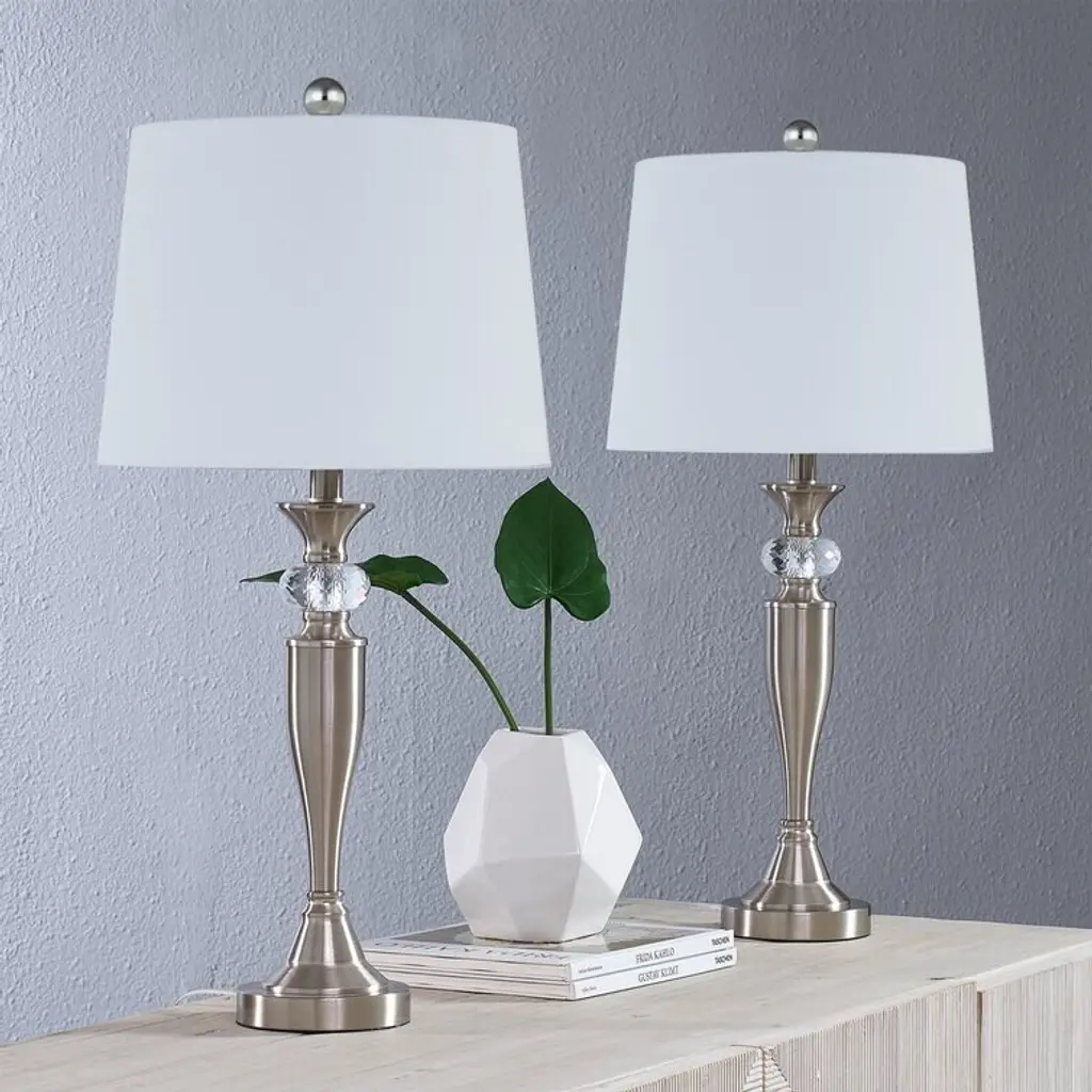 27'' Nickel Table Lamp Set (Set Of 2) - White Shade