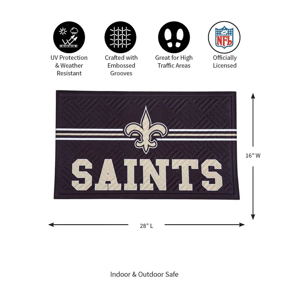 28 In. X 16 In. Embossed Mat, Cross Hatch, New Orleans Saints - Multi-Color