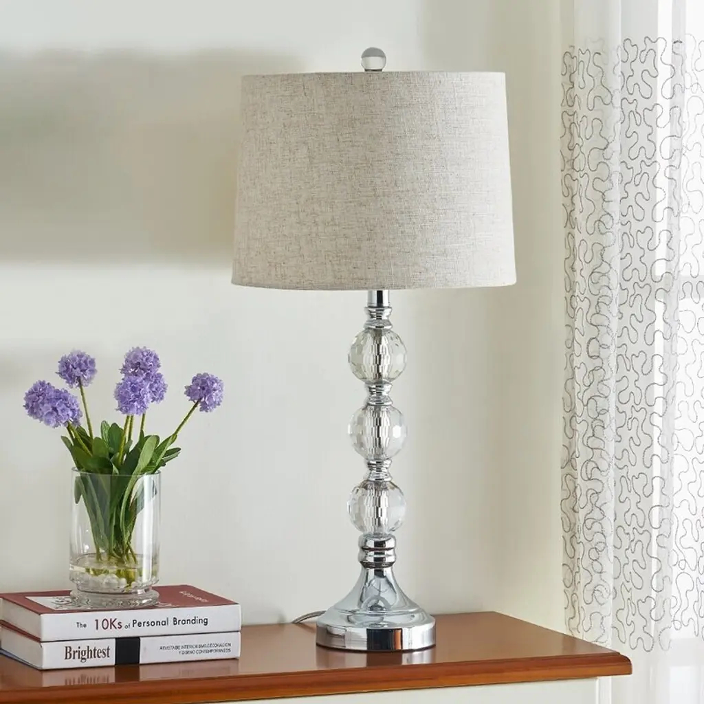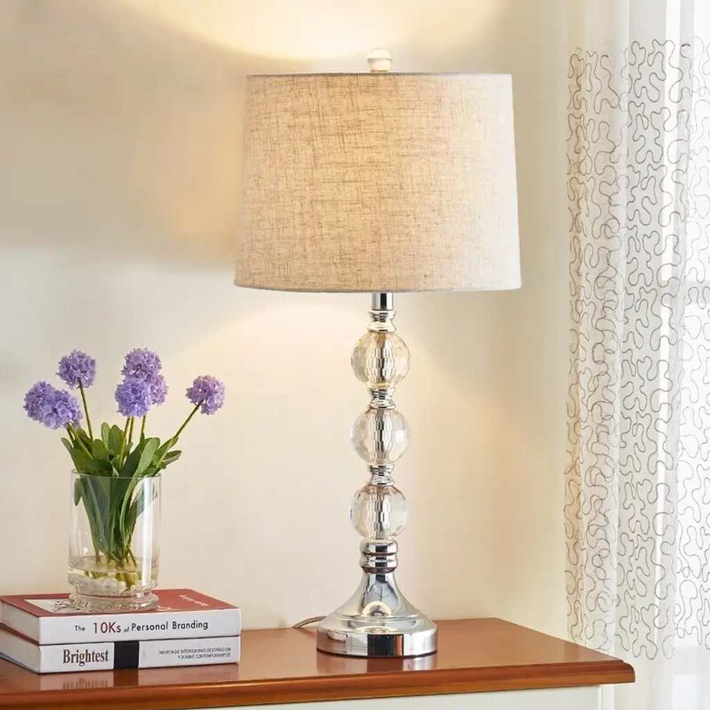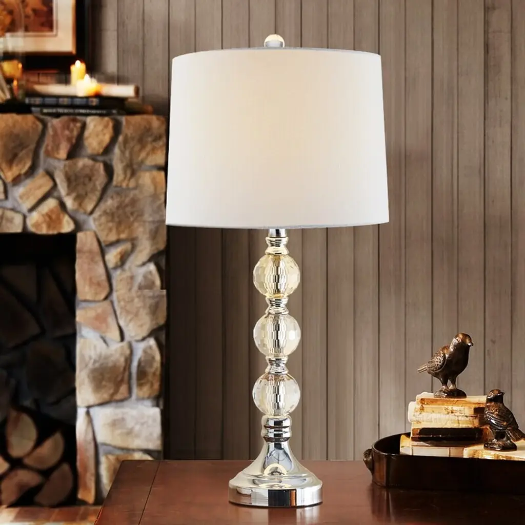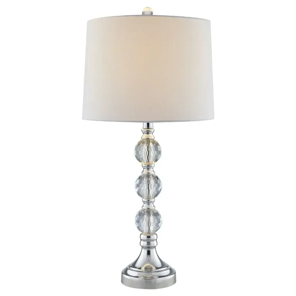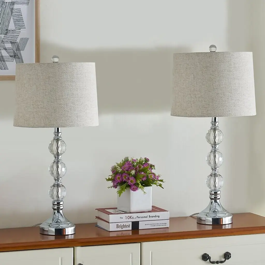 28" Silver Chrome / Clear Bedside Table Lamp Set (Set Of 2) - White Shade