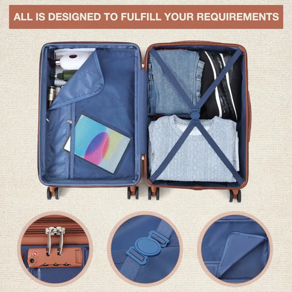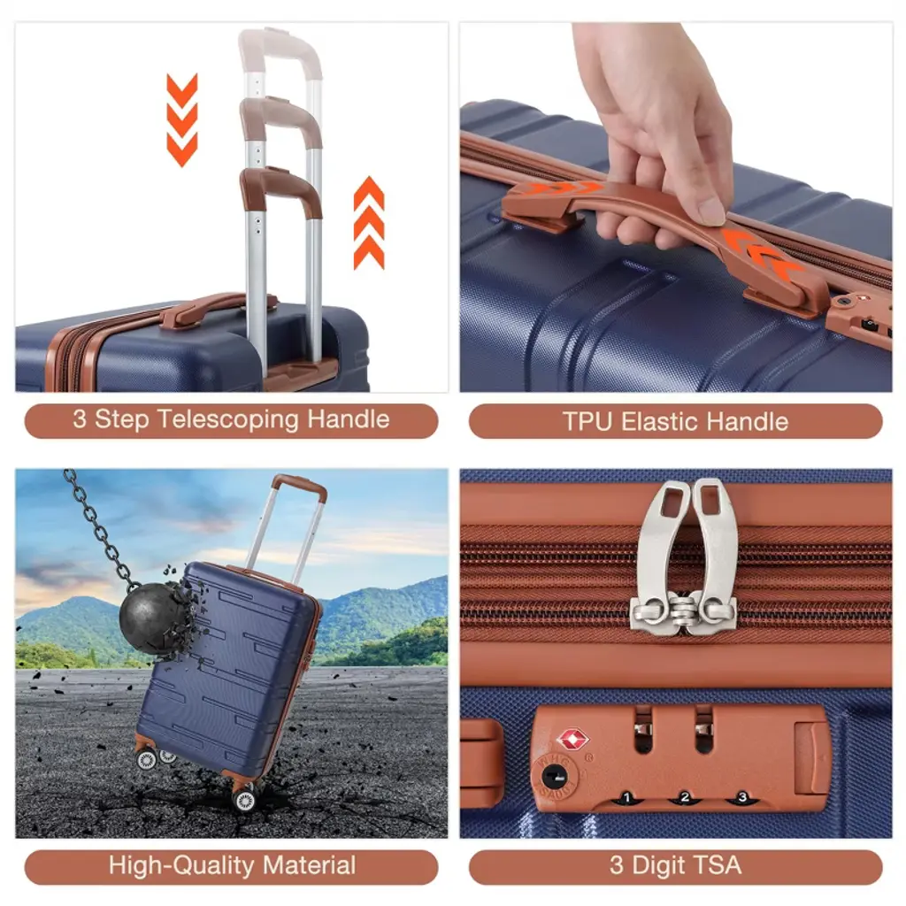 Hardside Checked Luggage, Expandable Suitcase with Spinner WheelsProduct Description:Pack with confidence for your next extended trip with this versatile and durable hardside checked luggage. Designed for the savvy traveler, it combines robust security features with exceptional organizational space. The expandable design offers flexible packing, allowing you to increase capacity for souvenirs and shopping. Glide effortlessly through airports and terminals thanks to the smooth-rolling 360¡ã spinner wheels, while the integrated TSA lock provides peace of mind for your checked belongings. With a smart interior layout and a lightweight yet tough ABS shell, this suitcase is the perfect companion for business trips, family vacations, and long-distance travel.Key Features:Trusted TSA Travel Lock: Travel with confidence thanks to the built-in TSA-approved combination lock. It allows security personnel to inspect your bag without damage, securing both the main and separate laptop compartments with durable, reliable zippers for total peace of mind.Smooth & Silent Maneuverability: Navigate any terrain with ease. The double 360¡ã spinner wheels are engineered for ultra-quiet operation, providing stable and smooth rolling over carpets, pavements, and airport floors, even when fully loaded.Highly Organized Interior: Keep your belongings neatly arranged with multiple dedicated compartments. Features include sturdy cross-straps in the main compartment to secure clothes, a waterproof pouch for toiletries, and a U-frame zippered section for private items or documents.Generous Expandable Capacity: Perfect for longer getaways, this suitcase offers a substantial base volume of 97 liters and expands by an additional 17 liters (to 114L total) with its easy-zip expansion system. This provides 20% more space for bringing back souvenirs without needing a second bag.Durable & User-Friendly Design: Built from lightweight, scratch-resistant ABS material, the case is both tough and easy to handle. The ergonomic, 3-stage adjustable telescopic handle ensures a comfortable grip for travelers of all heights, making transportation effortless.