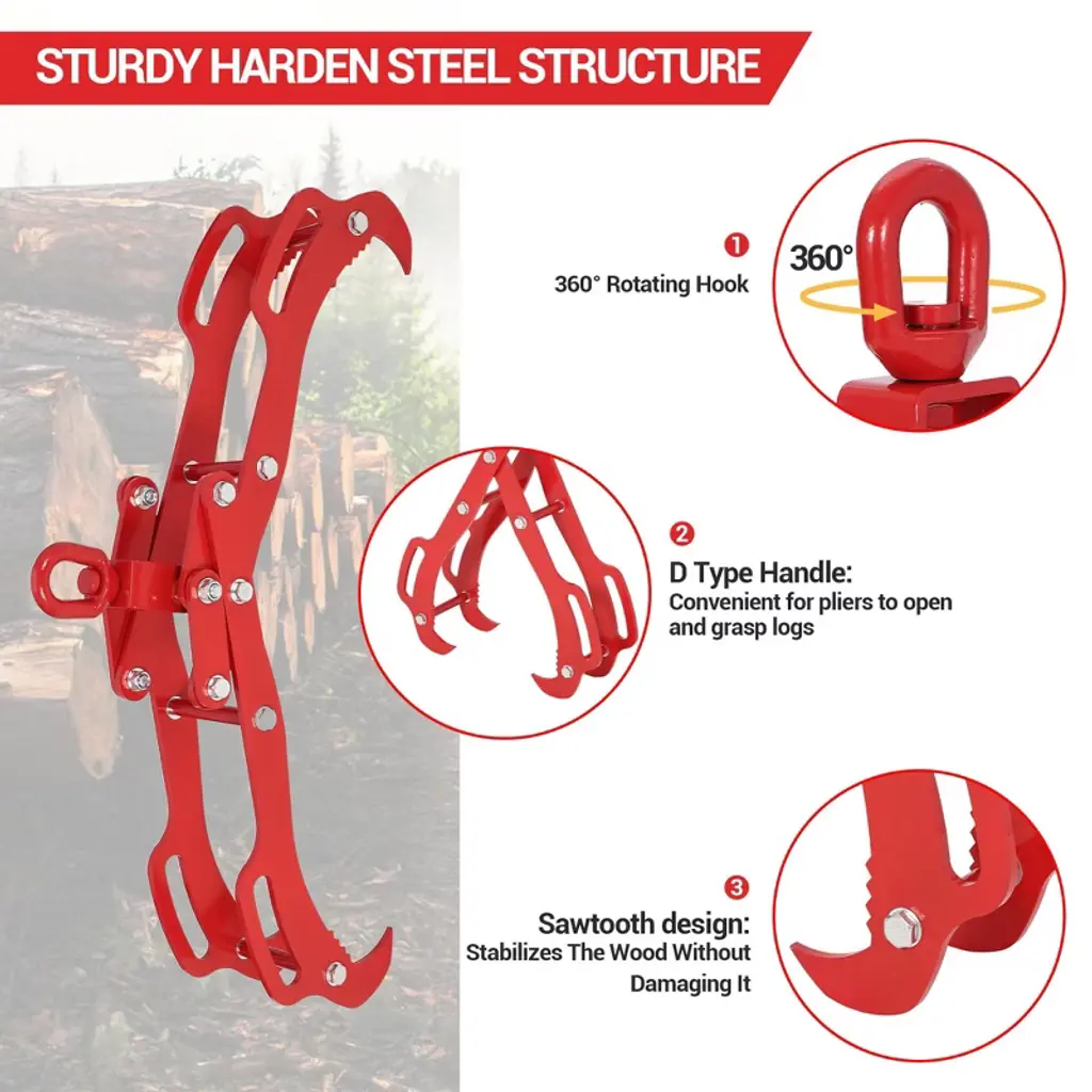 【Reinforced Steel Construction】Engineered with high-grade steel and serrated claw jaws, these log lifting tongs deliver exceptional gripping power without bending or breaking. The rugged design ensures secure handling of even the most stubborn logs, providing unmatched durability for heavy-duty use
