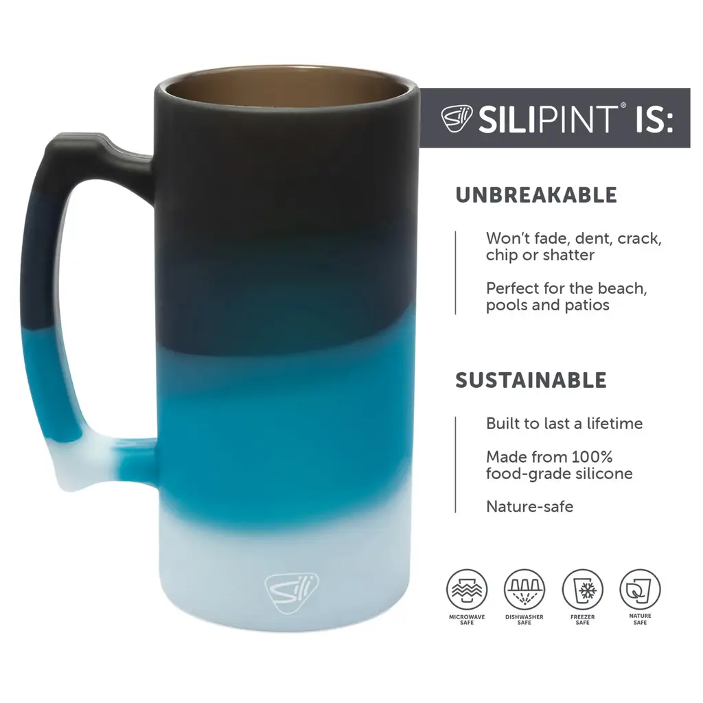 SILIPINT: BEER STEIN - 28OZ - Silipint's latest must-have for beer enthusiasts: our NEW silicone Beer Stein! Crafted from premium 100% food-grade silicone, this stein combines unparalleled durability with a timeless design. Whether you're raising a toast at a lively celebration or simply relaxing at home, its unbreakable construction guarantees that every sip is enjoyed without worry. As an eco-friendly and BPA-free alternative to traditional glassware, it's not only stylish but also sustainable. Plus, its dishwasher, microwave, and freezer-safe properties ensure effortless maintenance and versatility. Elevate your beer-drinking experience with Silipint's Beer Stein - where durability, style, and functionality converge for beer lovers everywhere to savor. THE ORIGINAL SILICONE DRINKWARE: Life should be fun and functional! Our products are created to mimic glass shapes we already know and love, have finishes that get a little fancy, and come in colors to suit just about any decor. Silipint offers shatterproof reusable cups, shot glasses, tumblers, wine glasses, and tableware with endless uses for endless fun! UNBREAKABLE: Our indestructible silicone coffee mug is built to last and survive the chaos of morning rituals! Enjoy your brew worry-free with our shatterproof cup. VERSATILE: Whether you're celebrating with friends at a lively gathering or enjoying a quiet evening at home, our unbreakable beer stein is the perfect vessel for savoring your favorite brews. 100% FOOD-GRADE SILICONE: Crafted from 100% food-grade silicone. Non-Toxic, BPA-free, Phthalates-free - they're the perfect blend of safety and longevity for your daily brew! HIGH-QUALITY: Each reusable beer stein is dishwasher-safe, freezer-friendly & microwave-safe. Our products will not break, crack, chip, dent, fade, or scratch. Easy-to-grip handle. EARTH-FRIENDLY: Silicone is reusable and sustainable, so by purchasing our products, you'll reduce plastic and paper in the waste stream and oceans. Partner with us to create a waste-free lifestyle!