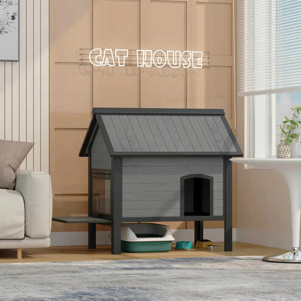 29.5 In Wooden Feral Cat House, All-Around Insulated Cat Shelter - 38.5" L X 16.5" W X 29.5" H - Gray - 38.5" L X 16.5" W X 29.5" H