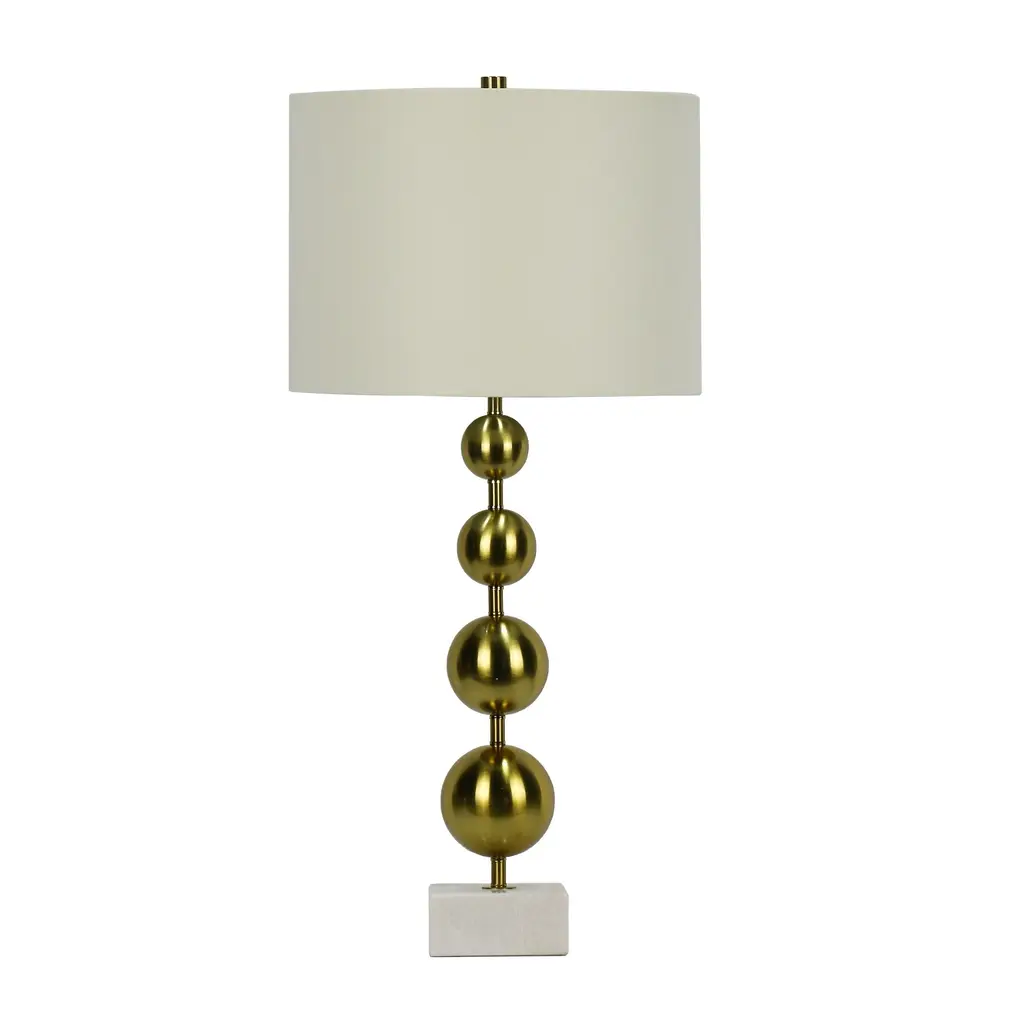 This 29.5" contemporary stacked table lamp with marble base has a unique feel that will easily brighten your treasured location while inspiring a sense of elegance. Perfect for a bedroom or living room, this lamp offers a transitional appearance to compliment your style. Lamp comes with a designer shade in cream linen, uses a single 100W bulb(not included), easy on/off switch and is UL & CSA listed. If you like to add a touch of chic to your environment, this is the lamp for you.
