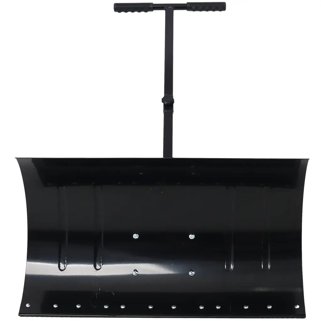 Our snowplow can easily help you deal with snow accumulation, eliminating the need for physically taxing work such as bending, lifting, turning and throwing snow. With just a simple forward pushing motion, this snow pusher quickly plows through snow thanks to its durable metal structure and excellent workmanship. The adjustable push rod allows you to push snow from different positions and angles, while the soft handle pads provide a comfortable shoveling experience. 2 large wheels aid in controlling the push rod with greater stability. The high pit shovel efficiently eliminates large quantities of snow, making it ideal for cleaning lanes, roads or sidewalks. Features: Specification: