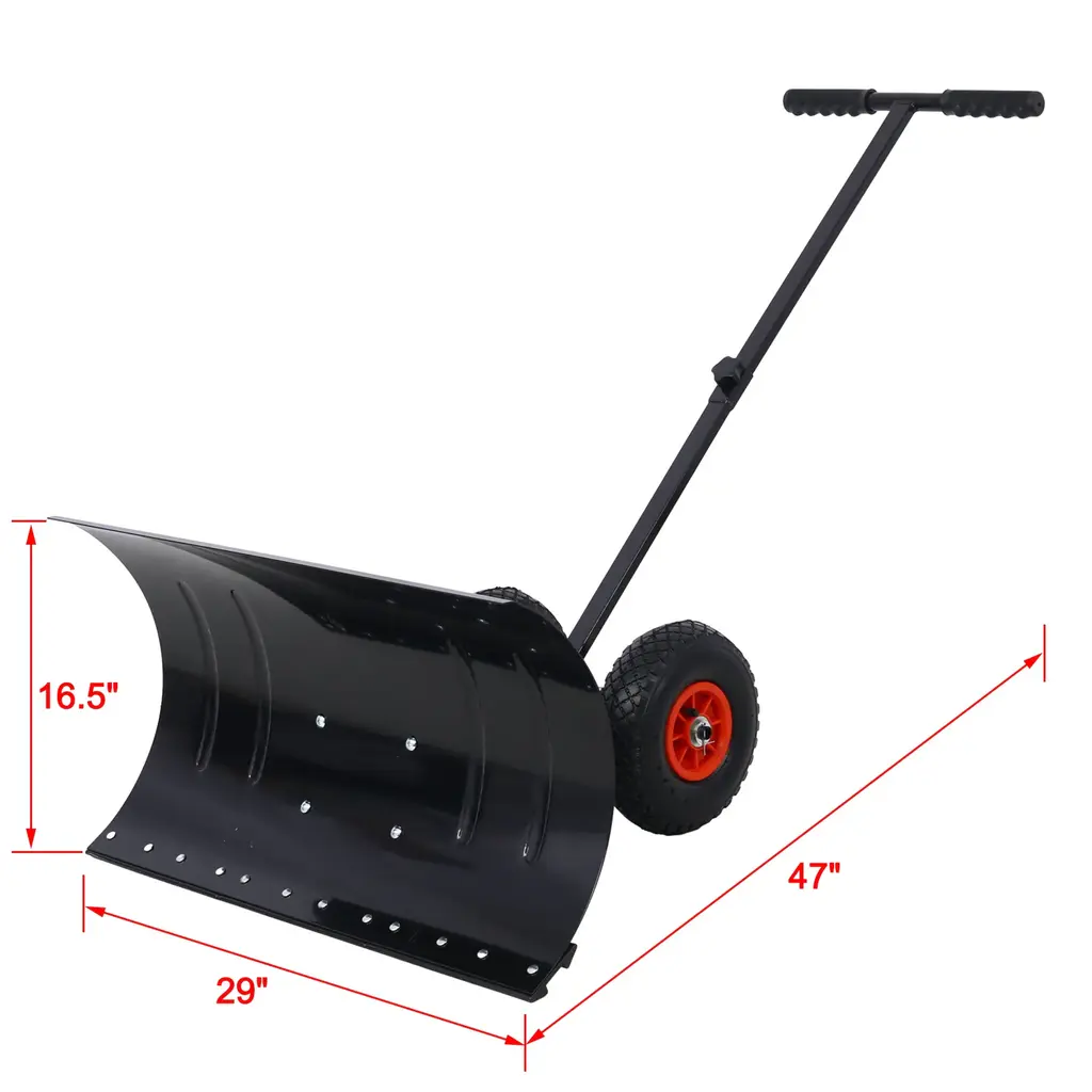 29 In. Metal Handle Steel Snow Shovel With 10 In. Wheels Adjustable Angle Handle Snow Removal Tool Snow Pusher - 29'' X 16.5'' X 47''