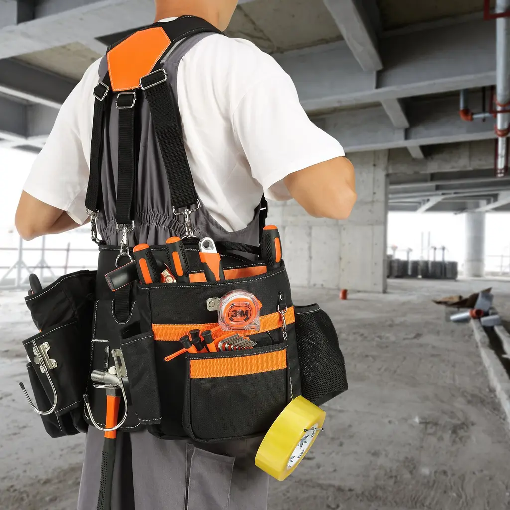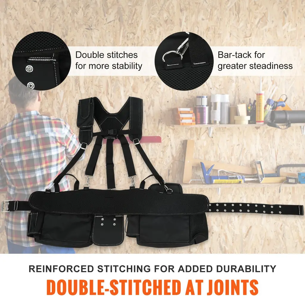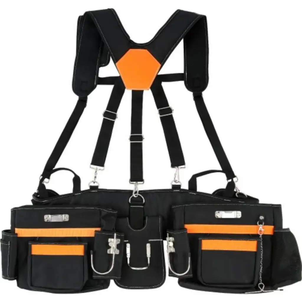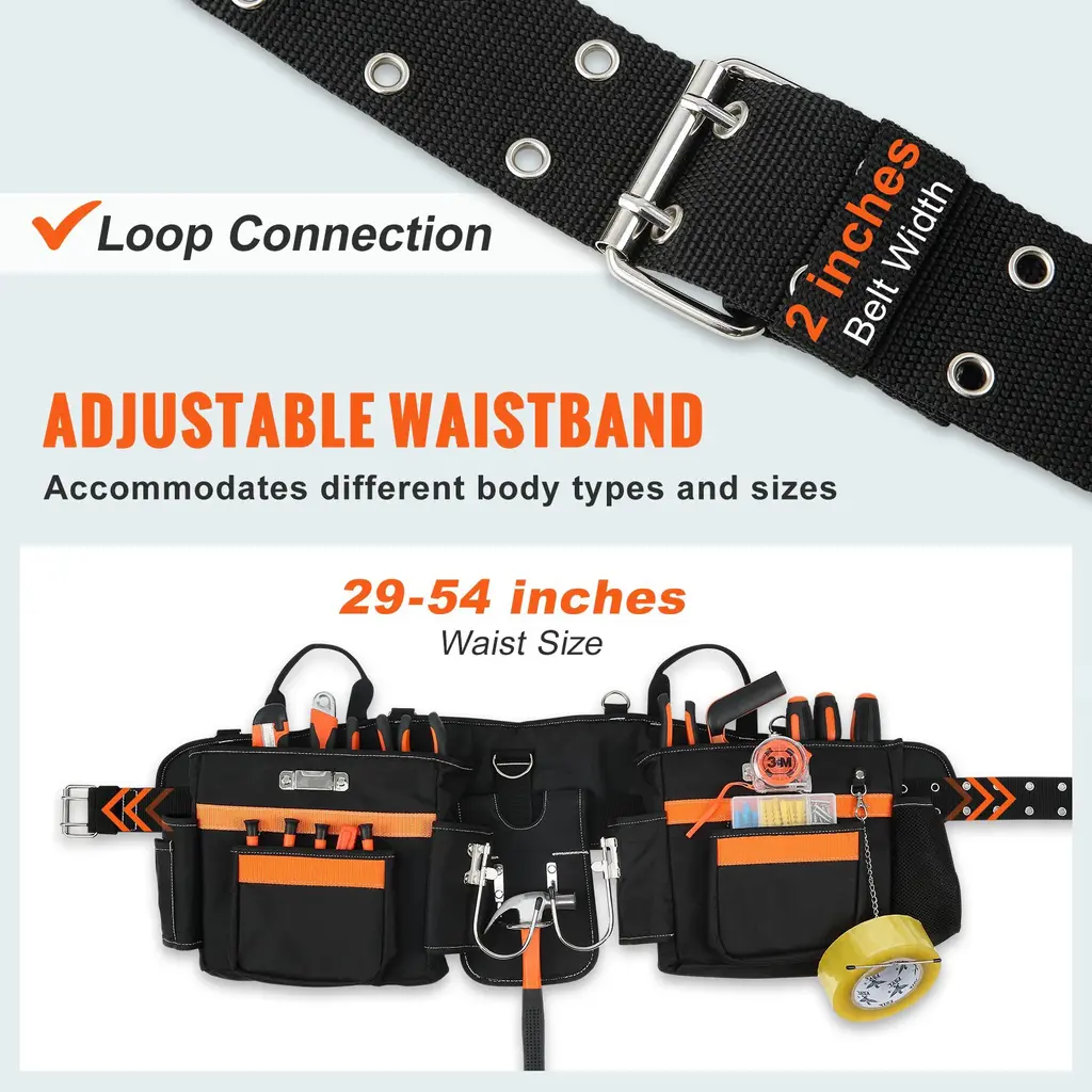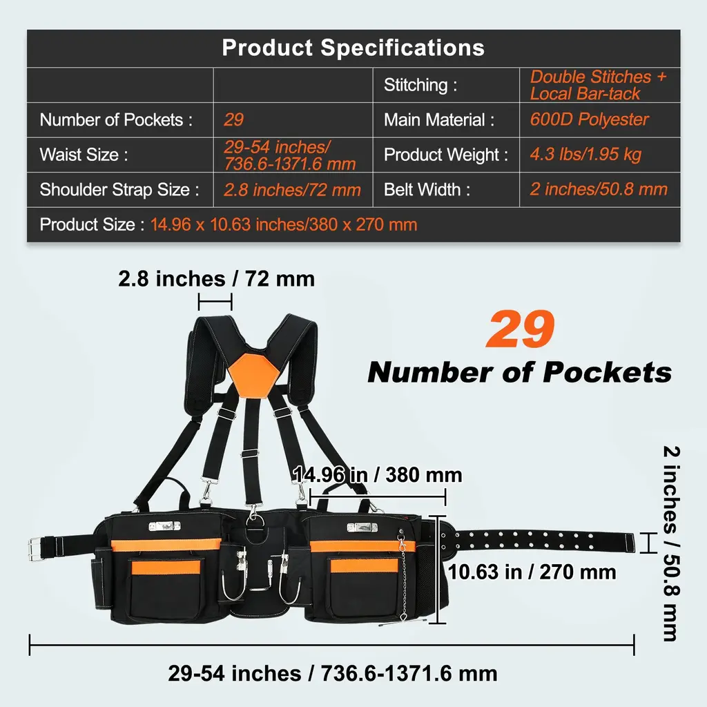 29 Pockets Black Polyester Tool Belt With Adjustable Waist Size Perfect For Builders Or Carpenters - 14.96 X 10.63 Inches - Black