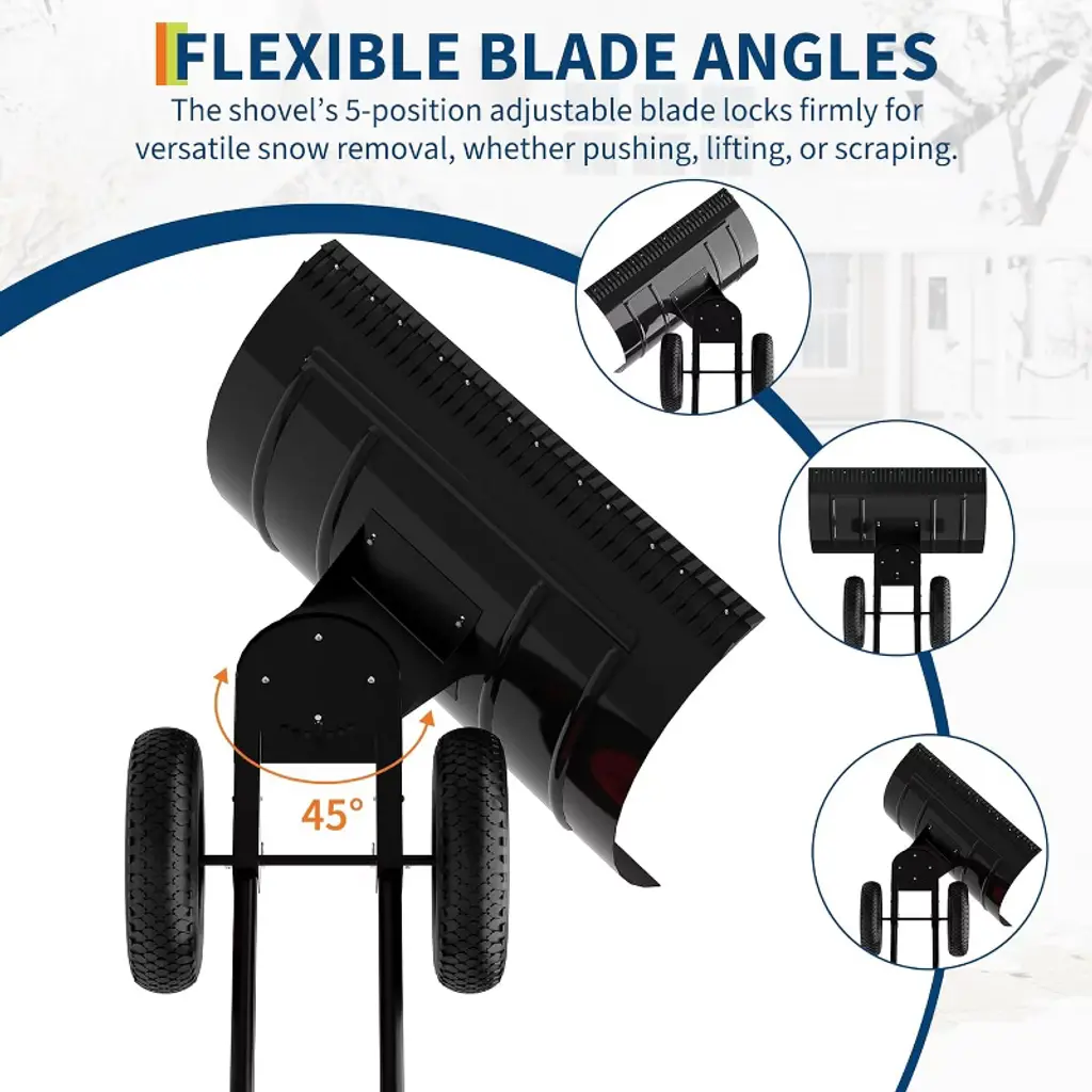 29" W Shovel Pusher For Driveway, Ergonomic Metal Snow Pusher With Wheels, Double Rod Snow Removal 5-level Adjustable Angle & Height Handle