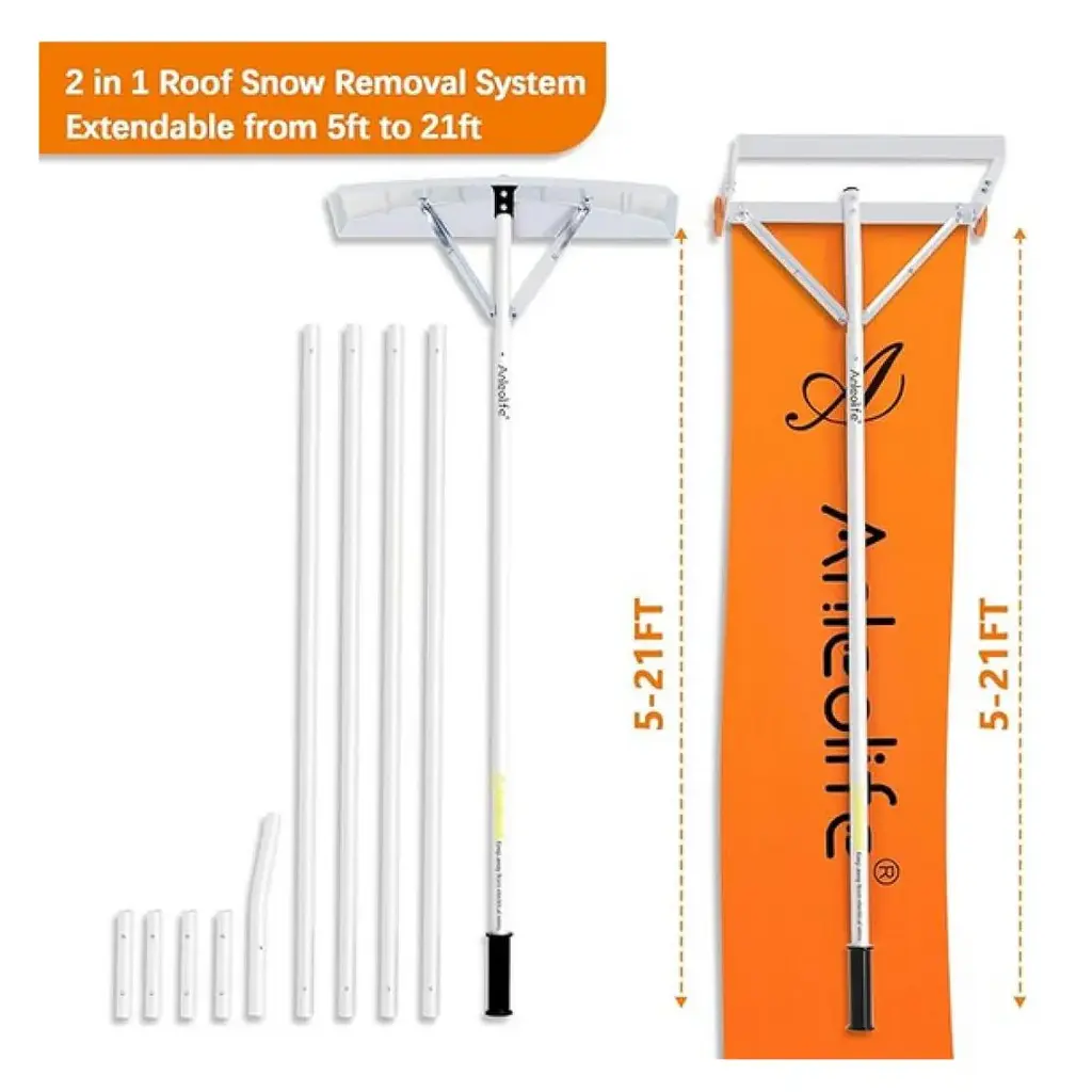 5-Level Adjustable Handle: Customize your comfort with five handle angles to reduce strain on your back and arms. The cushioned grip ensures a secure hold even in freezing temperatures, making it ideal for s of all ages. Whether you're tall, short, elderly, or a child, this adjustable design minimizes fatigue for effortless snow clearing.