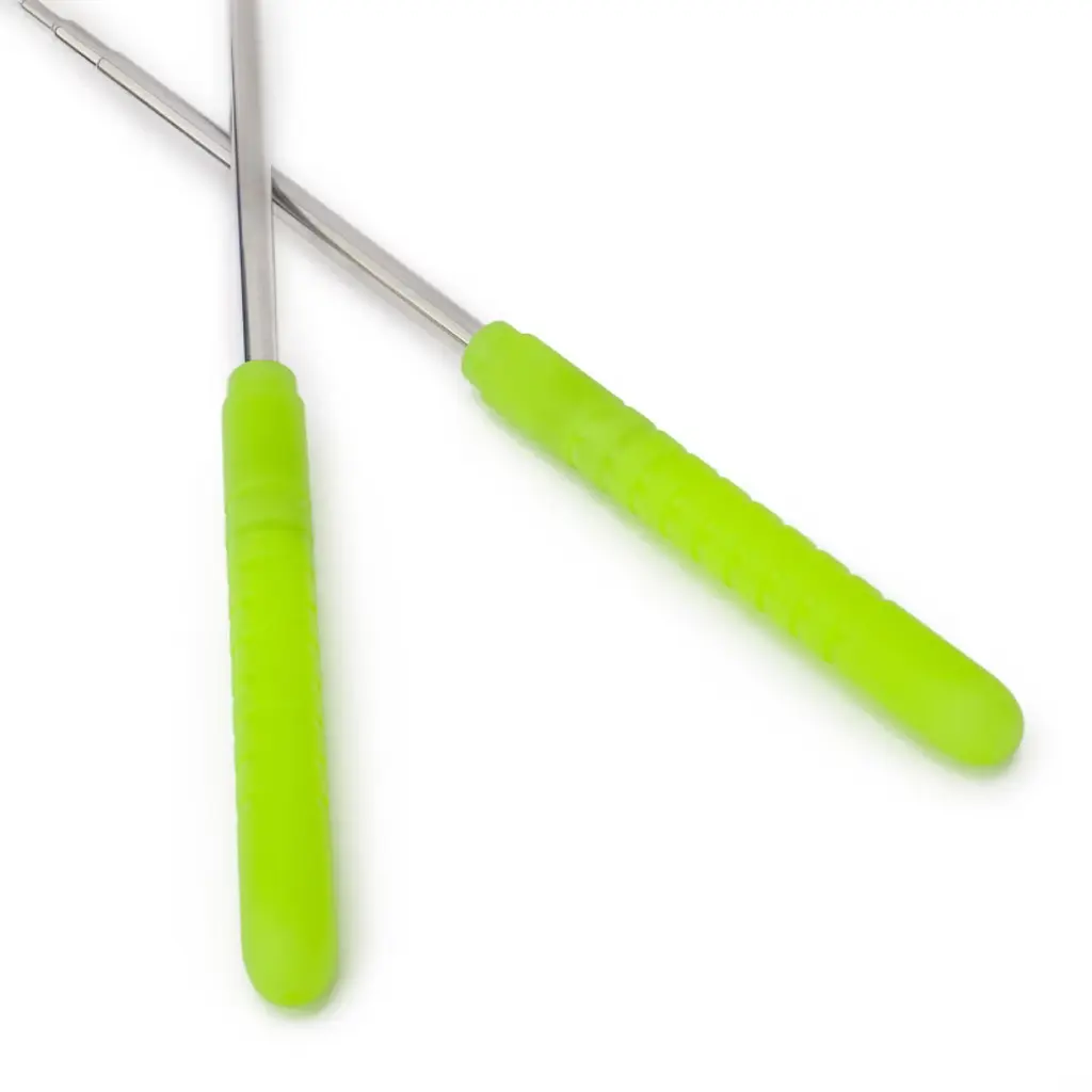 Light up your campfire nights with these glow-in-the-dark s'mores sticks from Bullseye's Playground. Crafted from durable stainless steel, these roasting forks are perfect for toasting marshmallows to golden perfection. The green polypropylene handles not only provide a comfortable grip but also add a fun touch to your outdoor gatherings. With a length of 13.5 inches, they offer a safe distance from the fire, ensuring a delightful and safe s'mores experience.