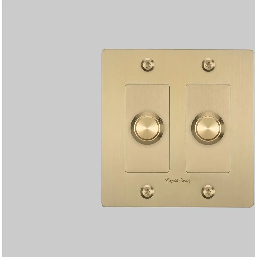 A dimmer switch finished in brass. The dimmer knob features our signature, linear knurl pattern and is made from solid brass metal.FYI: This piece has a 4 mm shadow gap when installed.