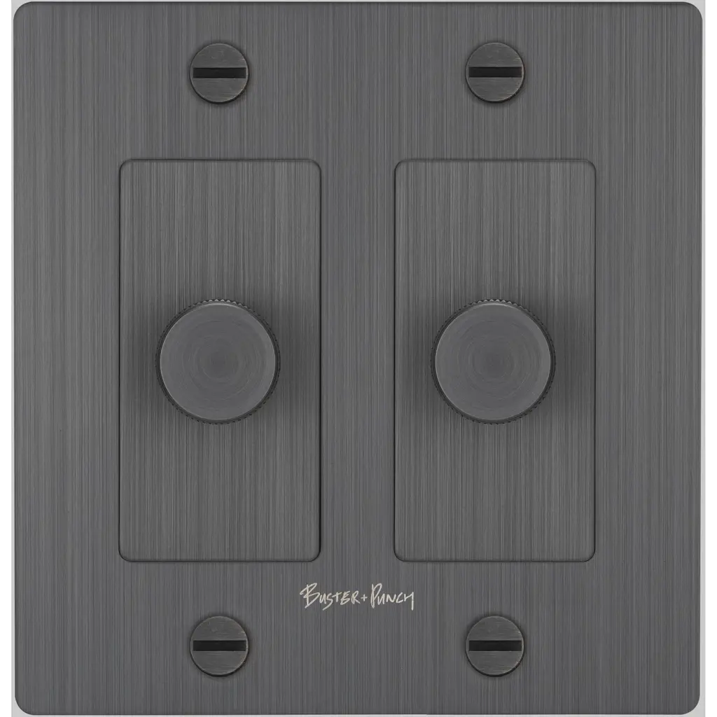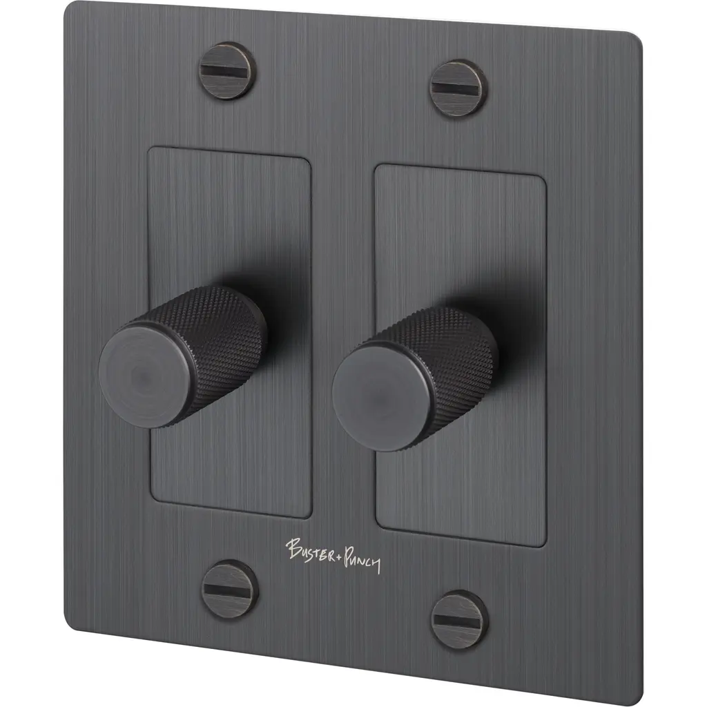 A dimmer switch finished in Smoked Bronze. The dimmer knob features our signature, diamond-cut, cross knurl pattern and is made from solid Smoked Bronze metal.FYI: This piece has a 4 mm shadow gap when installed.