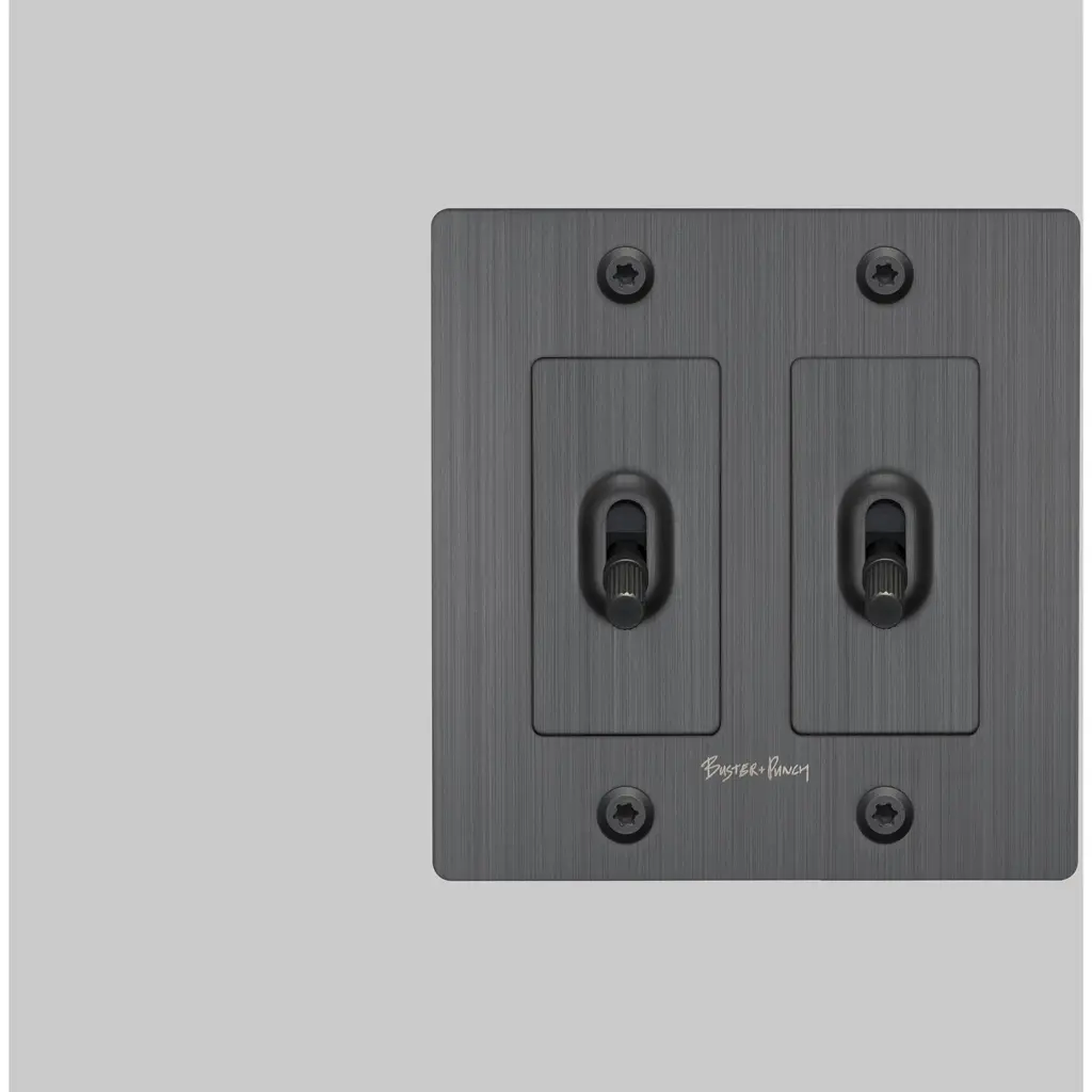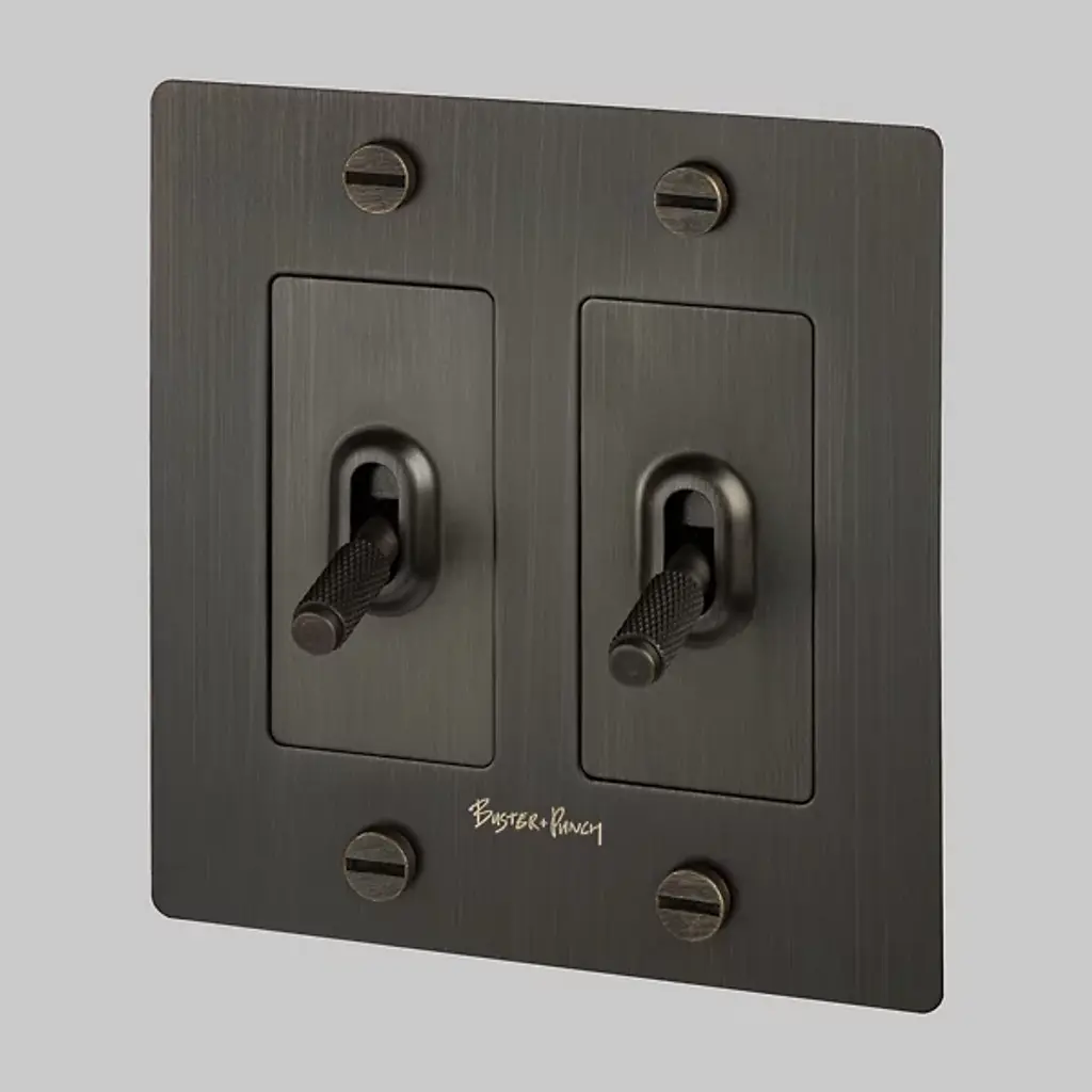 A 2G toggle switch finished in smoked bronze. The toggle arm features our newest signature, linear knurl pattern and is made from solid smoked bronze.