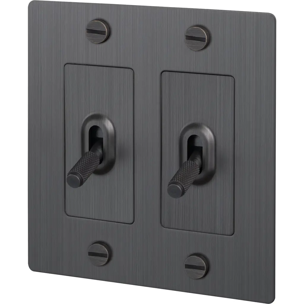 A toggle switch finished in black. The toggle arm features our signature, diamond-cut, cross knurl pattern and is made from solid black anodised metal.