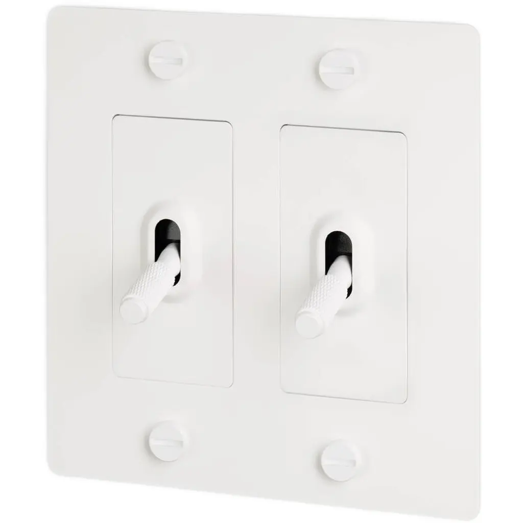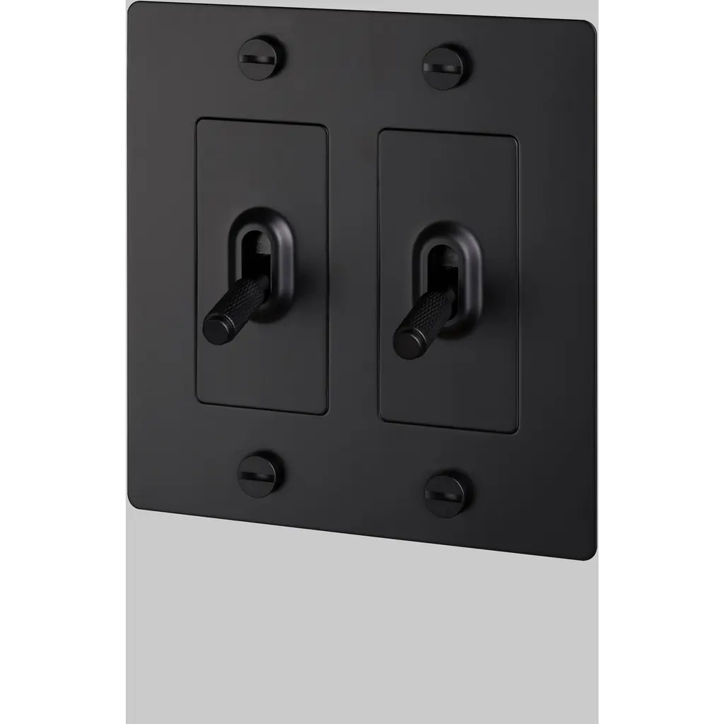 A toggle switch finished in black. The toggle arm features our signature, diamond-cut, cross knurl pattern and is made from solid black anodised metal.
