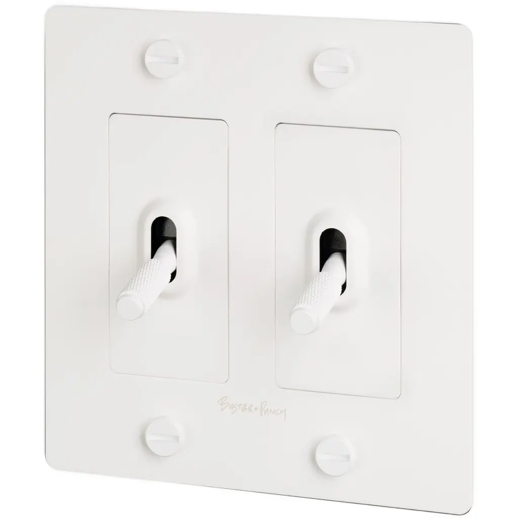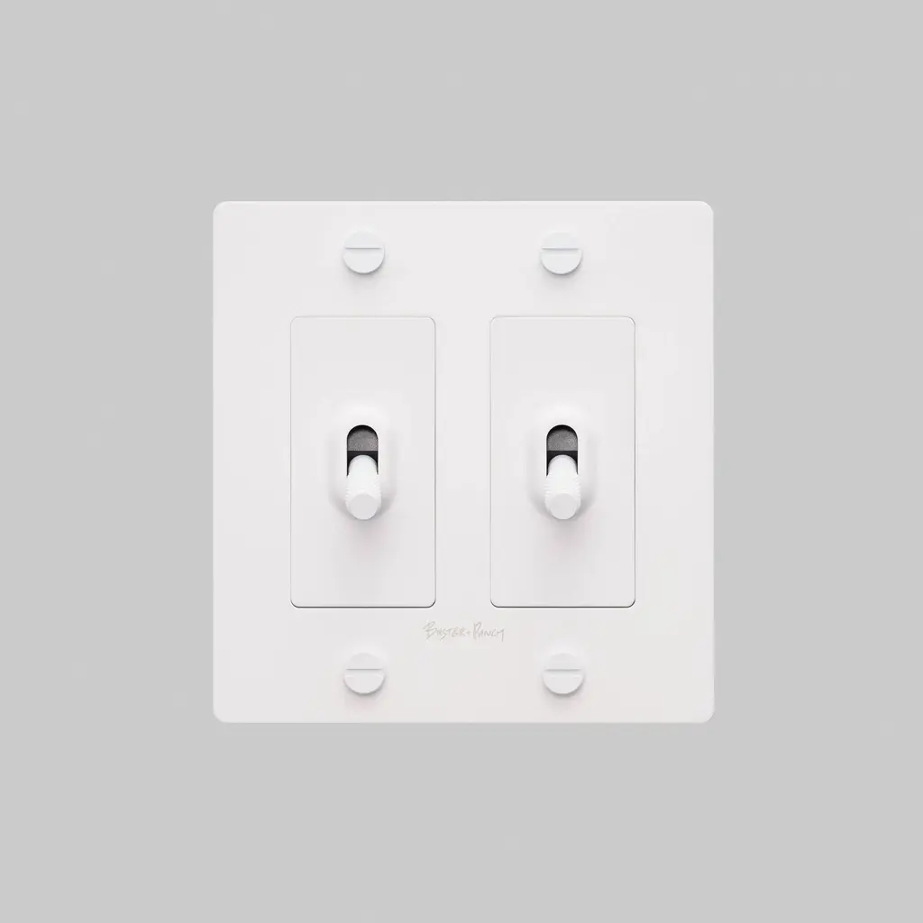 A toggle switch finished in white. The toggle arm features our signature, diamond-cut, cross knurl pattern and is made from solid white anodised metal.