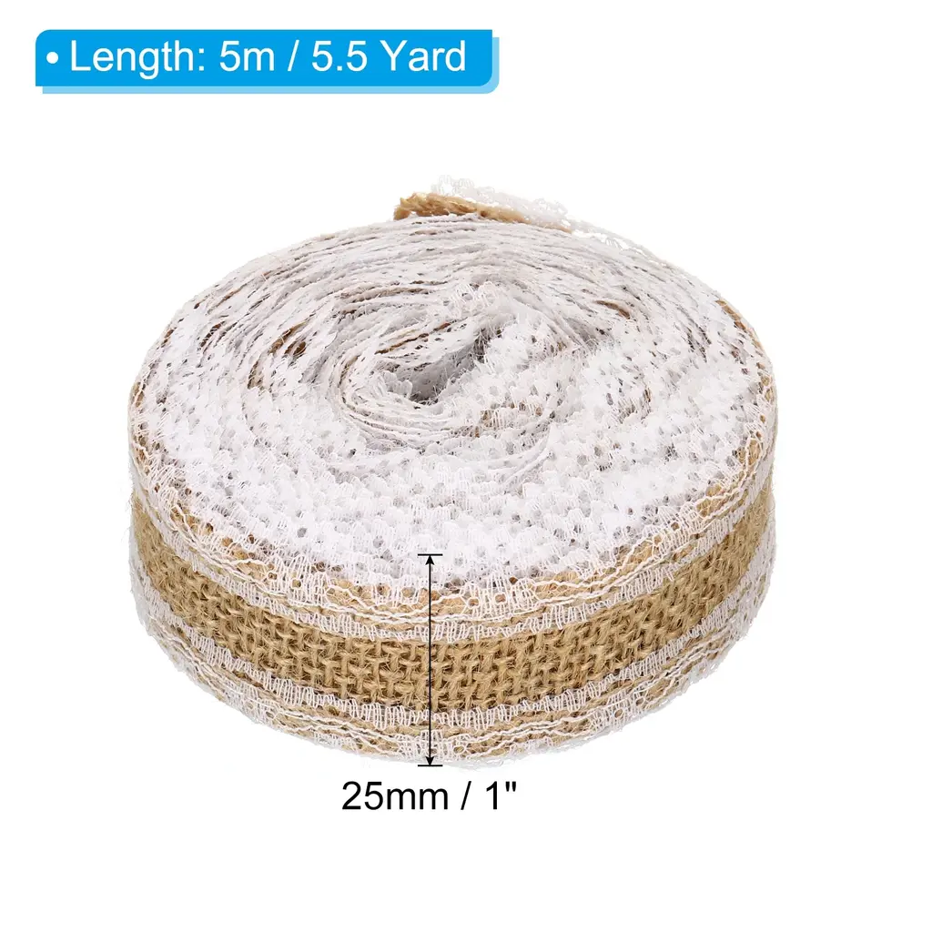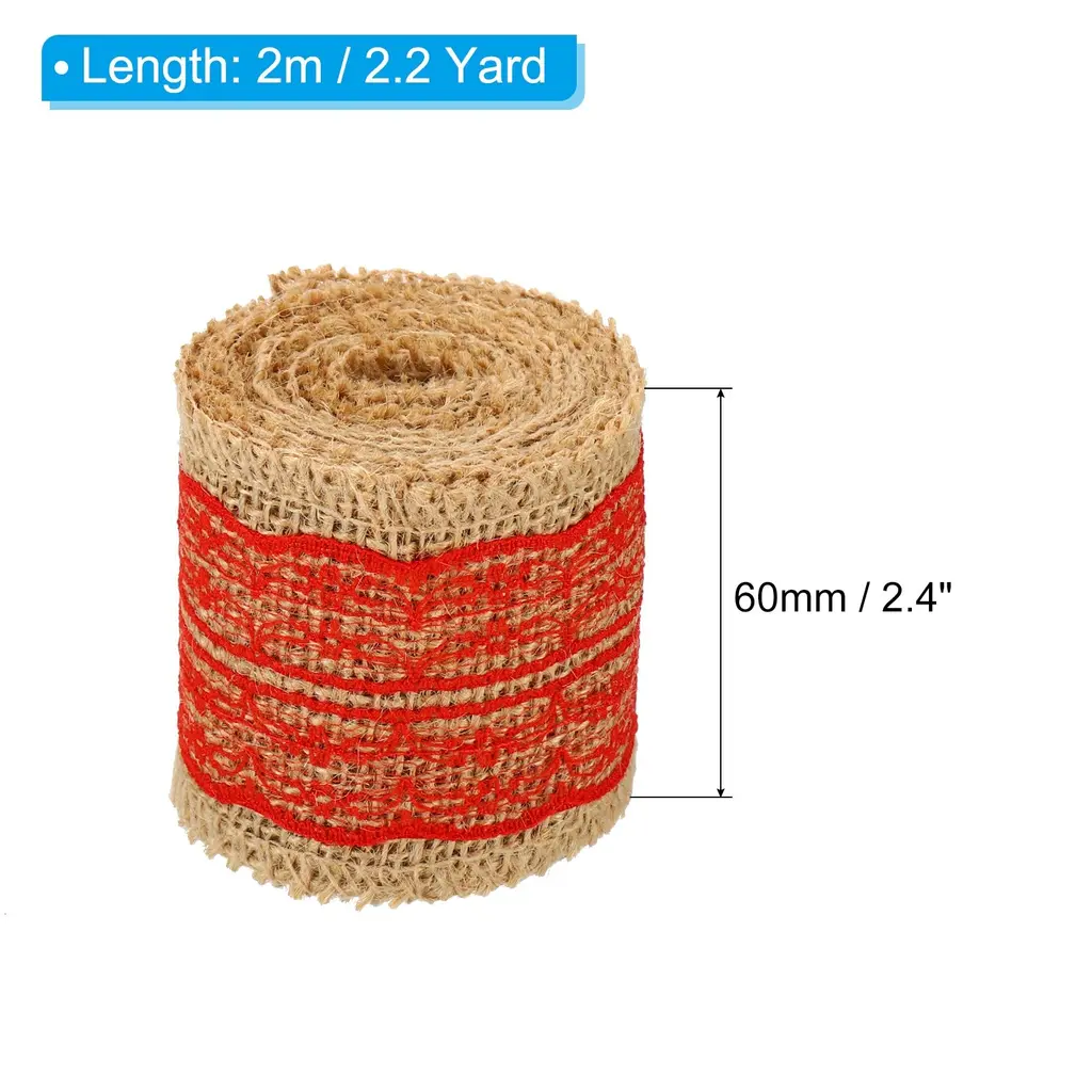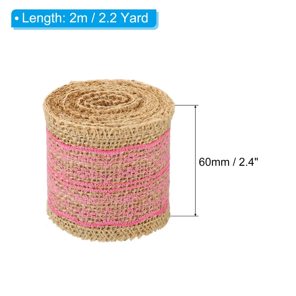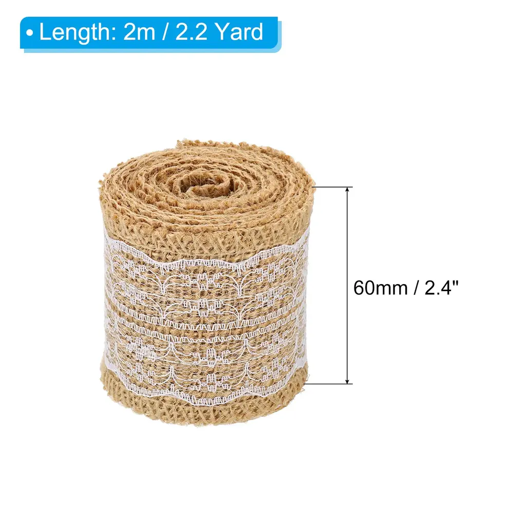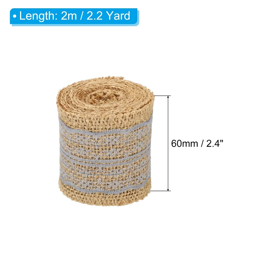 Add a touch of rustic charm to your craft projects with this 2pc 2.4" Wide 2.2 Yards Burlap Ribbon Lace Roll Wrapping Crafts Roll. Made from high-quality burlap fabric, this ribbon roll is not only visually appealing but also soft and comfortable to touch. It is perfect for adding a decorative bow or wrapping items, making it ideal for art crafts, wine bottle decoration, package decoration, flower arrangement, DIY cloth sewing, and more. The roll shape allows for easy storage and transportation, and you can easily cut it into the desired length and shape with scissors. Bring your crafts to life with this versatile burlap ribbon lace roll.Features: