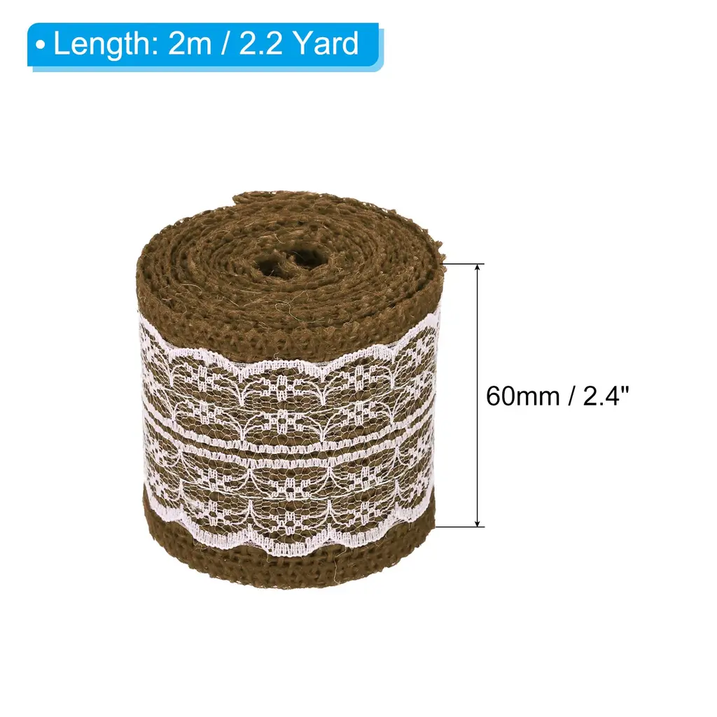 Add a touch of elegance to your crafts with this 2pc 2.4" Wide 2.2 Yards Burlap Ribbon White Lace Wrapping Crafts Roll. Perfect for a variety of projects, this burlap ribbon lace roll can be used for art crafts, wine bottle decoration, package decoration, flower arrangement, DIY cloth sewing, and more. Made of high-quality burlap fabric, this ribbon roll has a beautiful appearance and a soft, comfortable touch. It can be easily cut into any length or shape you desire with scissors. Conveniently packed in a roll shape, it is easy to store and carry. Enhance your craft creations with this versatile burlap ribbon lace roll.Features: