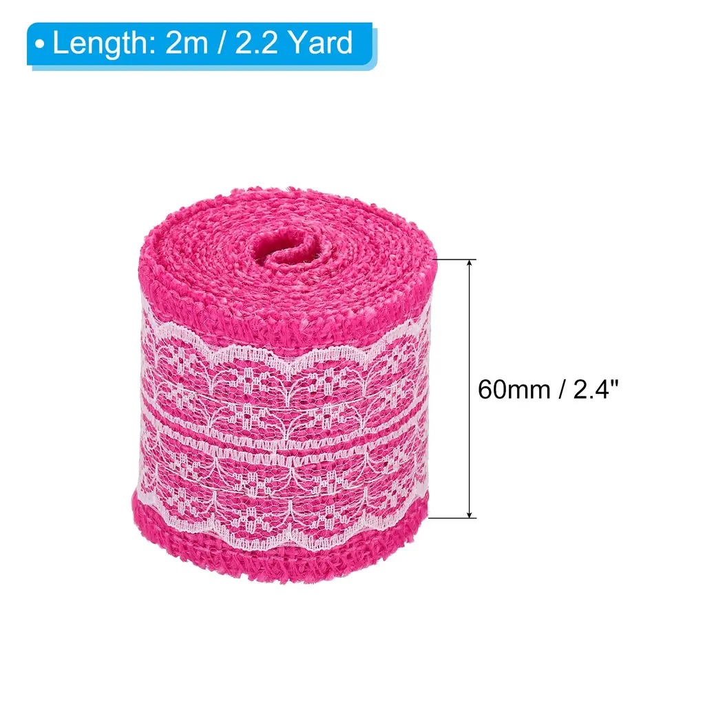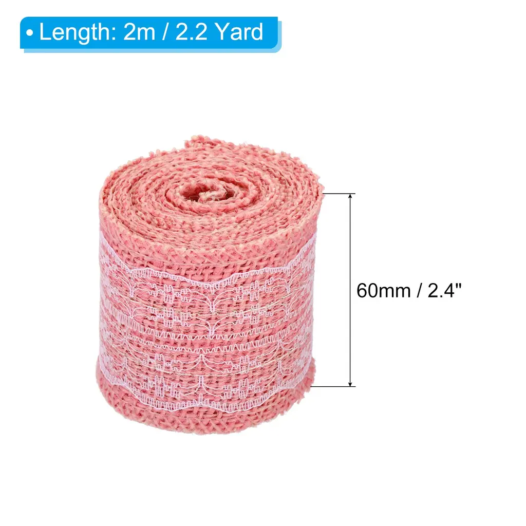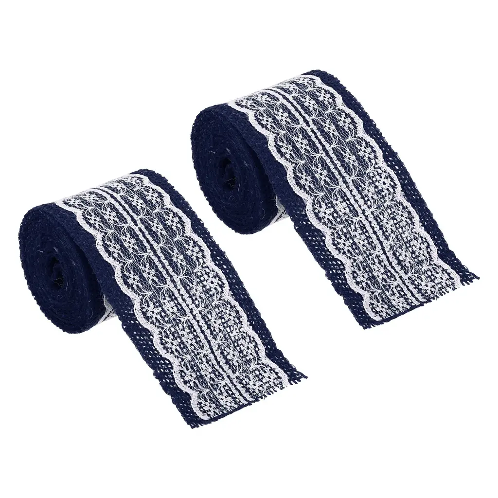 2Pc 2.4" Wide 2.2 Yards Burlap Ribbon White Lace Wrapping Crafts Roll - Red