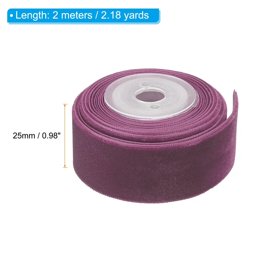 Velvet ribbons are widely used in weddings and birthday parties, graduation ceremonies, Easter, Halloween, home decoration, etc. It can be used as earring decoration, DIY hanging decoration, clothing decoration ribbon, braided headband, gift packaging, invitation and candy box bows, gift box gift wrapping, and clothing accessories decoration.Specification Color: BlackMaterial: NylonSize: 2m x 25mm / 2.18yards x 0.98inch(L*W)Package Contents: 2Pcs x Single Faced Velvet RibbonAdvantage1. Velvet Material: Velvet ribbon has luxurious pile and beautiful luster. It has a delicate hand feel, comfortable texture, good gloss, not easy to shed, fade, wrinkle, break or tear, single-sided fluffy design, thick fluff, and rebound quickly after being pressed by hand.2. DIY as you like: Vintage velvet is very suitable for DIY and crafts, you can add other accessories to make decorations and improve your hands-on ability.Instruction When cutting for use, determine the required quantity, cut it to avoid waste, and then decorate or fix it according to your needs.NOTE: Please allow slight deviations in color kindly due to different camera lenses, photography environments and display screens.