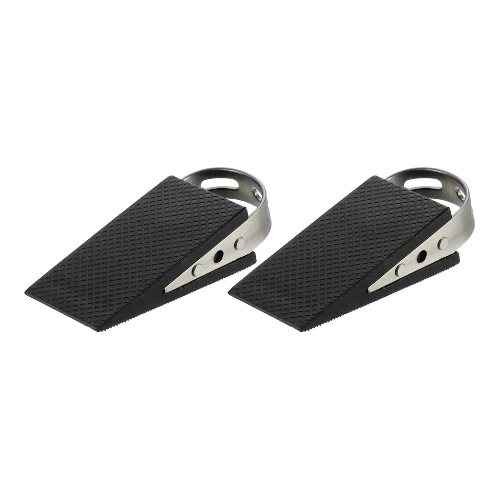 Description :Anti-Slip Design - The door stopper has a double-sided anti-slip function, with a horizontal stripe design on the surface, which increases the friction with the door and can easily fix the position of the door. The bottom hollowed-out anti-slip design keeps the door stable on the floor, with even force distribution during use, and is not easy to move.Material - The door stoppers for the bottom of the door are made of Stainless Steel + PVC, soft and non-slip, they will not scratch the surface of the floor or door; It has elasticity and can adapt to larger gaps, and can also be used on floors of various materials (wooden boards, ceramic tiles, and so on), and the trapezoidal design also provides cushioning force when closing the door.Easy Using - Place the door stopper on the floor at a suitable distance, which is easy to replace and does not affect cleaning. In addition to being used as a buffer and fixing when opening the door, it can also be used when closing the door to stop it from opening from the outside.Wide Applications - These door stops can be applied to various occasions, such as offices, homes, shops, hotels, etc; These door stops ensure that doors do not accidentally slip and close, so you don't have to worry about the door suddenly closing in winds, protecting the door and walls.Specifications:Material: Stainless Steel + PVCColor: Black Total Size: 95 mm x 49 mm x 32 mm / 3.75 Inch x 1.93 Inch x 1.26 Inch (L*W*H)Fit for distances with door gaps: Less than 32 mm / 1.26 InchPackage Content: 2 Pcs x Door Stoppers
