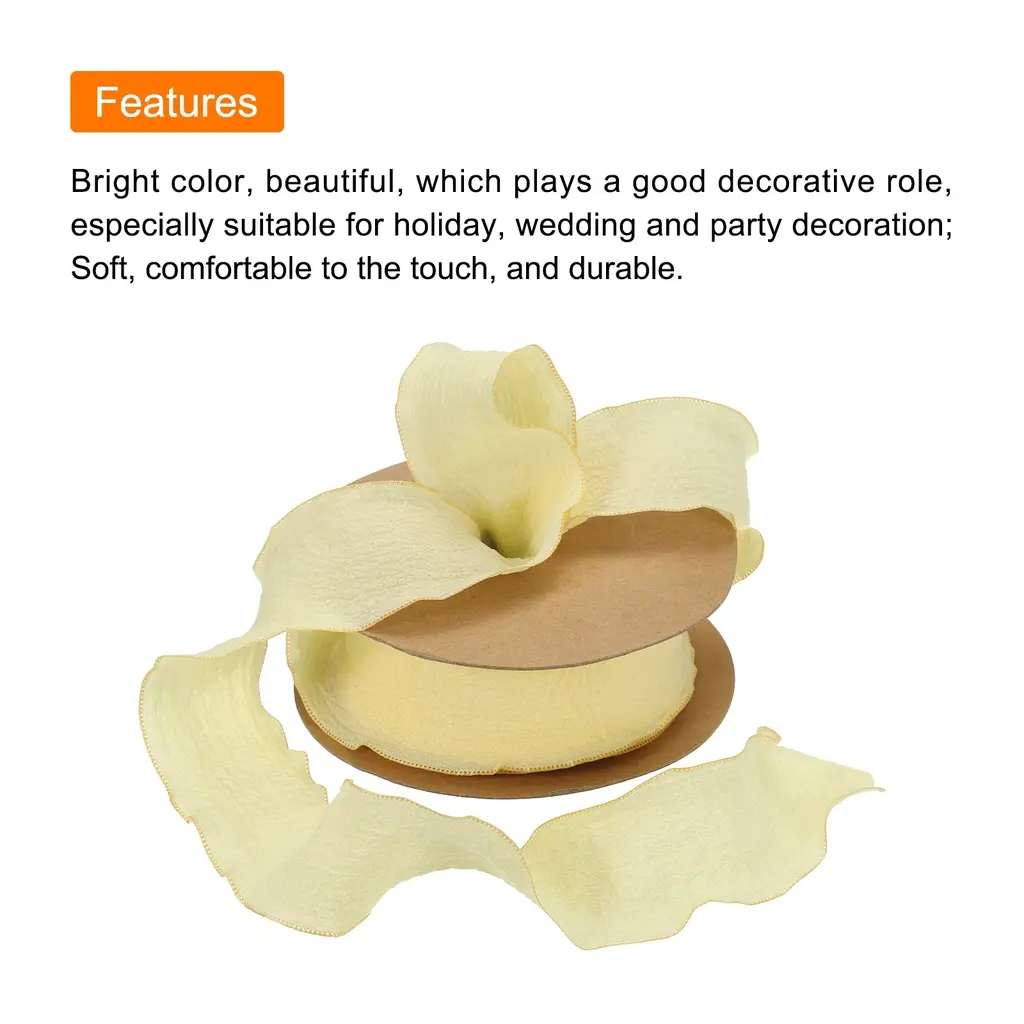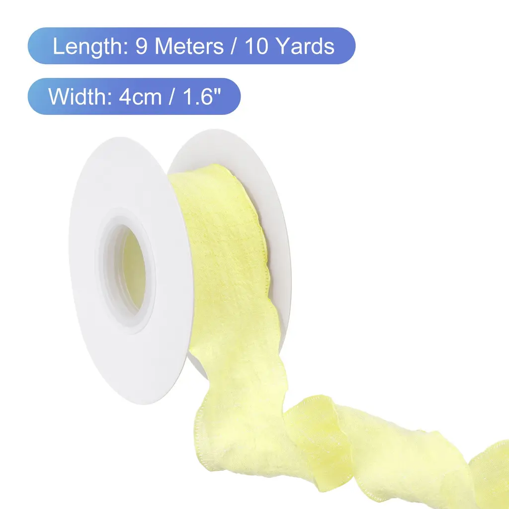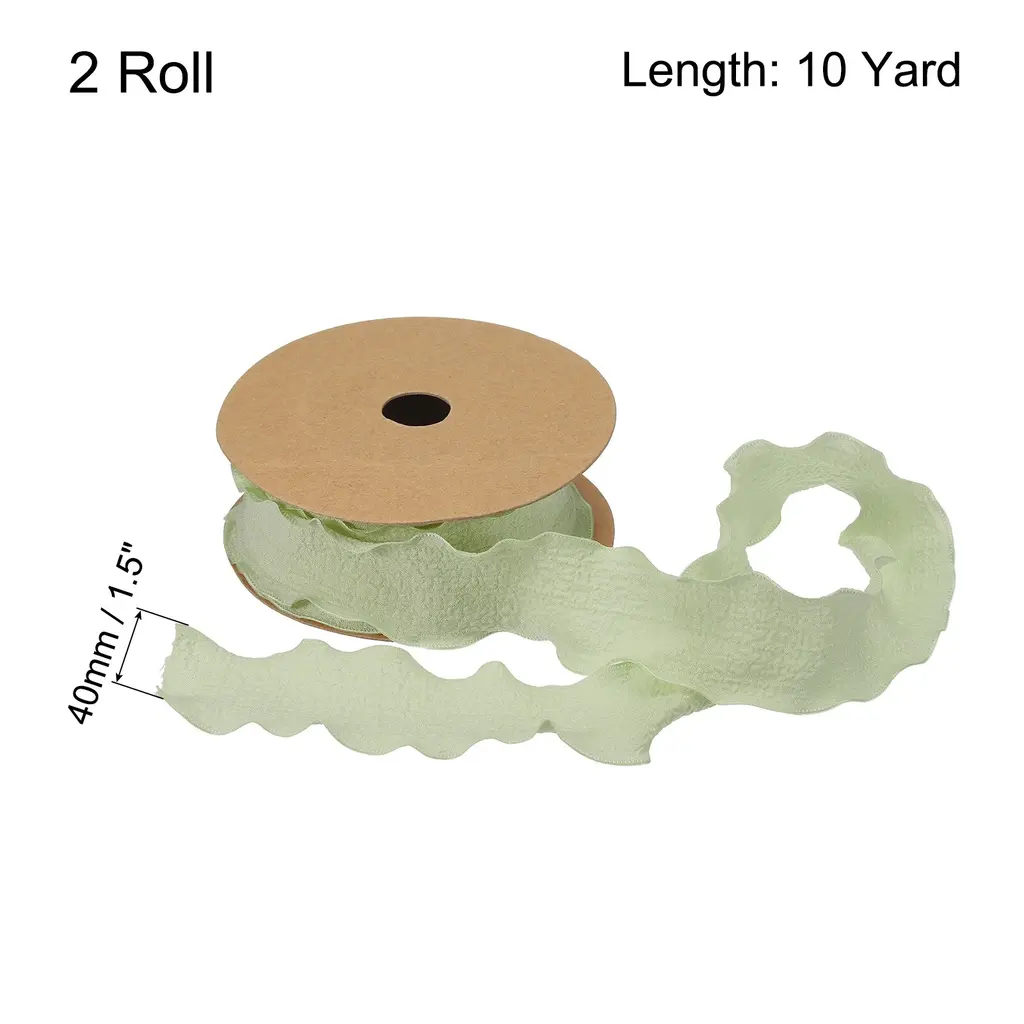 What is this?Bright colored draped ruffle ribbon rolls are suitable for DIY crafts handicraft decoration, making bows, gift wrapping packaging, holiday decoration, wedding decoration, flower design, party decoration, floral bouquet ribbon, scrapbooking, and can be used to decorate Christmas, Halloween, Thanksgiving, Teacher's Day, etc.What will I get?Draped ruffle ribbon, is in size of :1.5 inch(40mm) width, 10 Yard lengthIn the package of: 2 Roll x Draped ruffle ribbonIs there any advantages of the product?Bright color, beautiful, which plays a good decorative role, especially suitable for holiday, wedding and party decoration; Soft, comfortable to the touch, and durableHow to use it?Steps of installation: 1. Select draped ruffle ribbon with appropriate specification; 2. For gift wrapping, holiday decorationWhat should I notice?Please pay attention to select the draped ruffle ribbon with suitable specifications