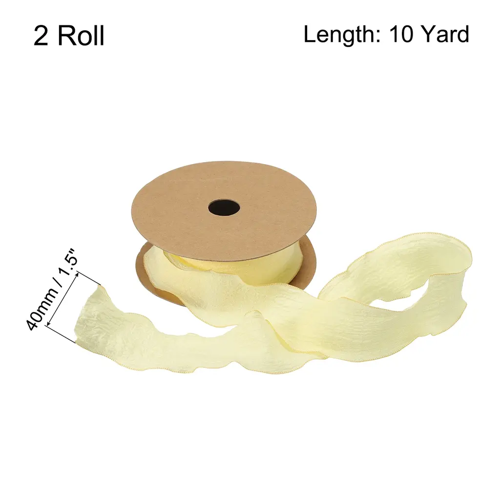2Pcs 1.5 Inch 10 Yard Satin Double Ruffle Edge Ribbon Solid Color - Dark Yellow