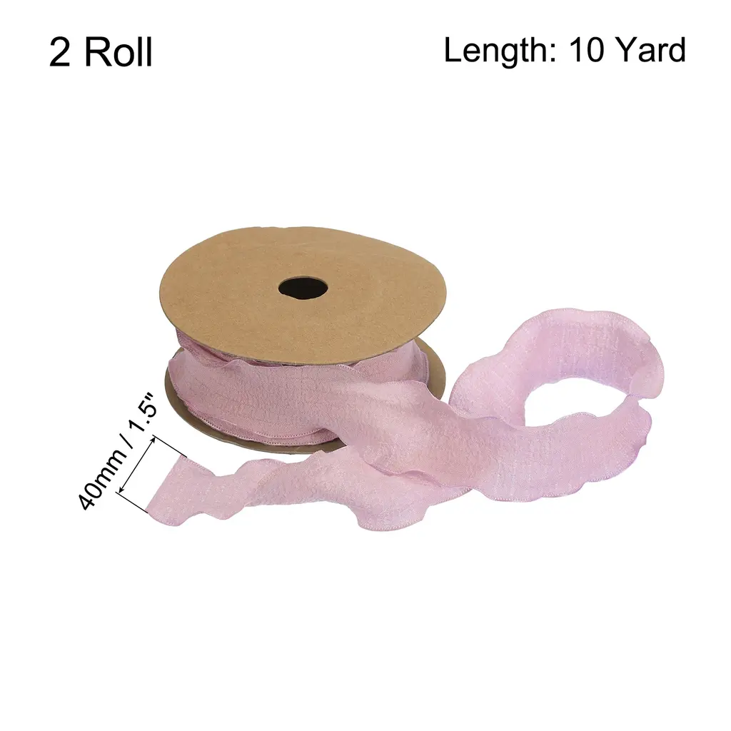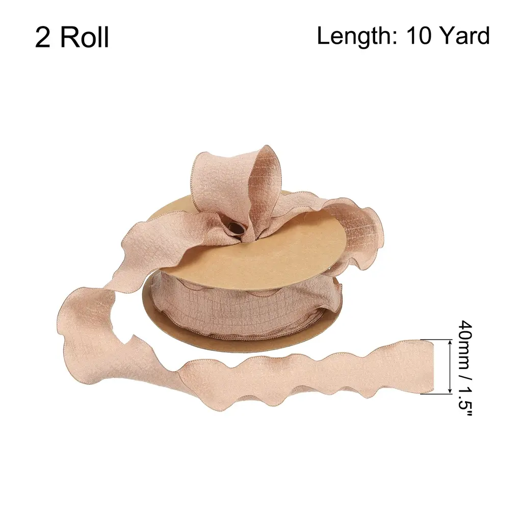 What is this?Bright colored draped ruffle ribbon rolls are suitable for DIY crafts handicraft decoration, making bows, gift wrapping packaging, holiday decoration, wedding decoration, flower design, party decoration, floral bouquet ribbon, scrapbooking, and can be used to decorate Christmas, Halloween, Thanksgiving, Teacher's Day, etc.What will I get?Draped ruffle ribbon, is in size of :1.5 inch(40mm) width, 10 Yard lengthIn the package of: 2 Roll x Draped ruffle ribbonIs there any advantages of the product?Bright color, beautiful, which plays a good decorative role, especially suitable for holiday, wedding and party decoration; Soft, comfortable to the touch, and durableHow to use it?Steps of installation: 1. Select draped ruffle ribbon with appropriate specification; 2. For gift wrapping, holiday decorationWhat should I notice?Please pay attention to select the draped ruffle ribbon with suitable specifications