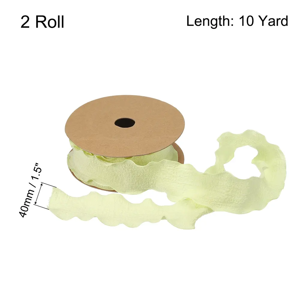 What is this?Bright colored draped ruffle ribbon rolls are suitable for DIY crafts handicraft decoration, making bows, gift wrapping packaging, holiday decoration, wedding decoration, flower design, party decoration, floral bouquet ribbon, scrapbooking, and can be used to decorate Christmas, Halloween, Thanksgiving, Teacher's Day, etc.What will I get?Draped ruffle ribbon, is in size of :1.5 inch(40mm) width, 10 Yard lengthIn the package of: 2 Roll x Draped ruffle ribbonIs there any advantages of the product?Bright color, beautiful, which plays a good decorative role, especially suitable for holiday, wedding and party decoration; Soft, comfortable to the touch, and durableHow to use it?Steps of installation: 1. Select draped ruffle ribbon with appropriate specification; 2. For gift wrapping, holiday decorationWhat should I notice?Please pay attention to select the draped ruffle ribbon with suitable specifications