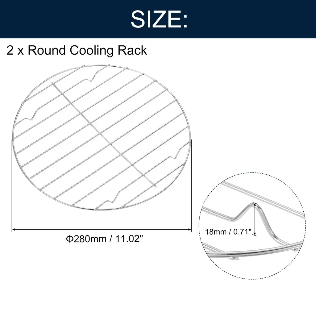 2Pcs 11" Round Cooling Rack, Roasting Steaming Cooling Rack, Cooking Grid Grill - Silver
