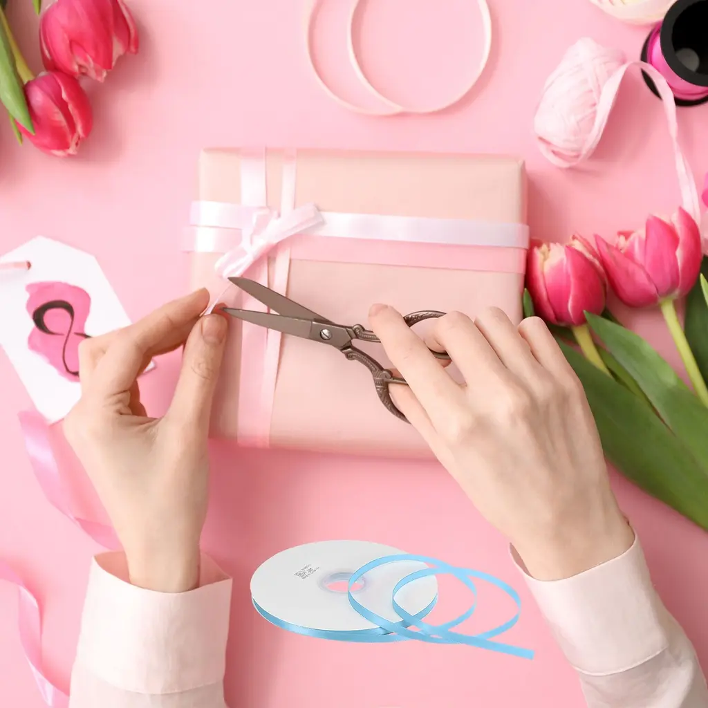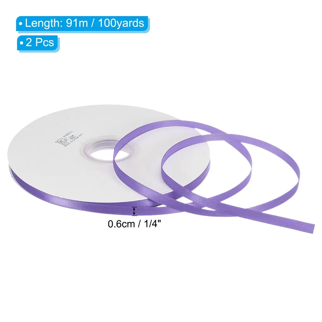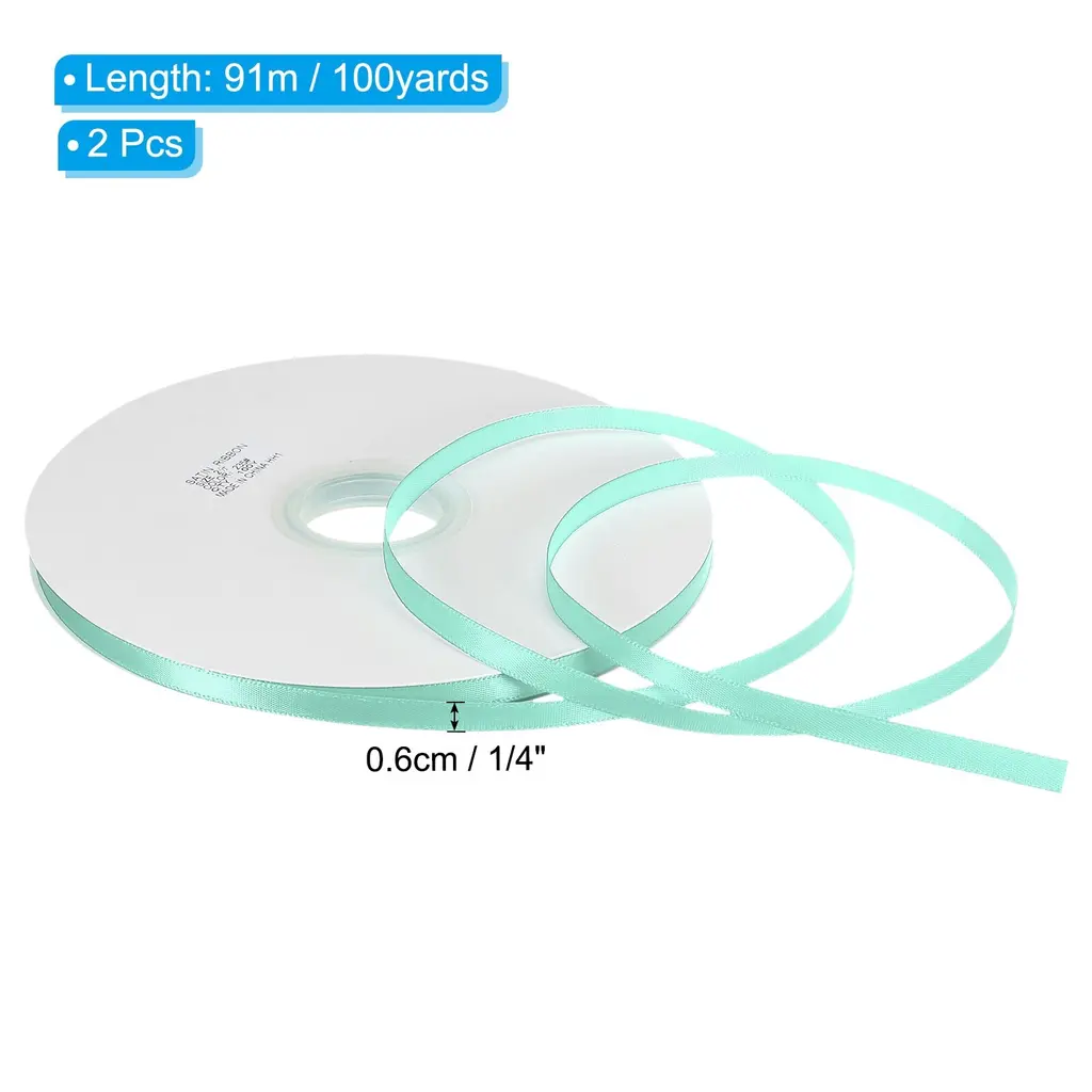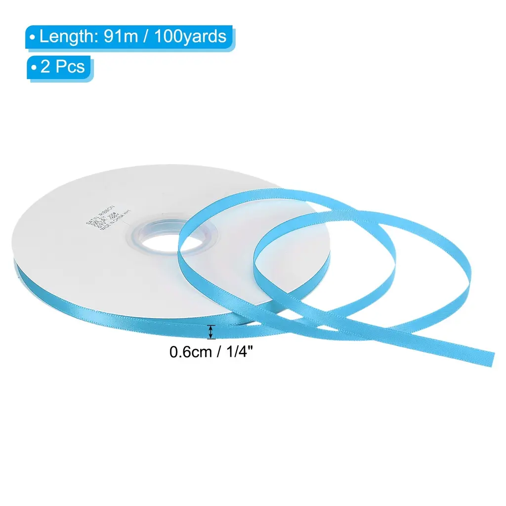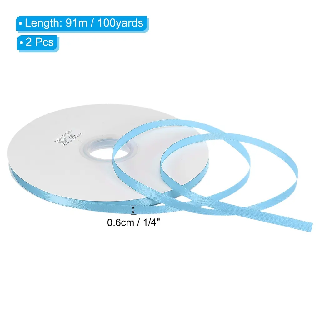 Ribbons are suitable for various occasions, including craft projects, wedding and birthday party decorations, gift wrapping, cake baking, invitations and candy box bows, gift box gift packaging, clothing accessories decoration, graduations, Easter, Halloween, home decoration, etc. It is also an DIY exquisite accessory, such as DIY hair accessories.Specification Color: Sky BlueMaterial: PolyesterSize: 91m x 0.6cm / 100yards x 1/4inch(L*W)Package Contents: 2Pcs x Single Faced Polyester Satin RibbonAdvantage1. Made of 100% polyester, has a delicate feel, comfortable texture and good gloss, without wrinkles. Venues, gifts, and clothing decorated with ribbons will become high-end and fashionable2. Weather-resistant soft tenacity satin ribbon, not easy to break.3. The Satin Ribbon is protected by reel, which prevents the ribbons from being dirty, and well-packaged.Instruction Before use, determine the required amount, then cut it to avoid waste, and then decorate or fix it according to your needs.NOTE:please allow slight deviations in color kindly due to different camera lenses, photography environments and display screens.