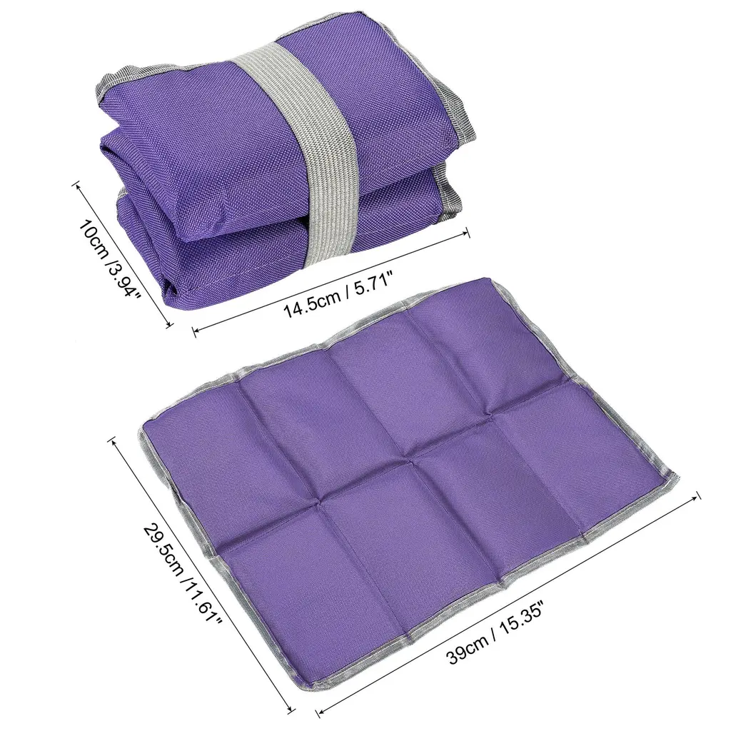 These pads make a big difference compared to sitting on a hard surface, they weigh next to nothing and fold into a compact block. They keep you warm and dry no matter if you are sitting on the ground or on snow.Specification Material: Foam, Oxford ClothFolded Size: Approx 14.5 x 10 x 9cm / 5.71 x 3.94 x 3.54 inchUnfolded Size: Approx 39 x 29.5 x 1cm / 15.35 x 11.61 x 0.39 inchPacking List: 2 x Camping PadAdvantageThe foam mats are lightweight, easy to fold and provide a soft, dry place to sit. They are more convenient than a blanket or towel to tote around in your backpacks.Instruction1. For camping, just put this as a mat outside your tent, easy to get in and out of the tent.2. When not camping, put this in the back of your backpack to keep your back comfortable.NOTE: Please read the measurements before ordering if you are concerned about the size.