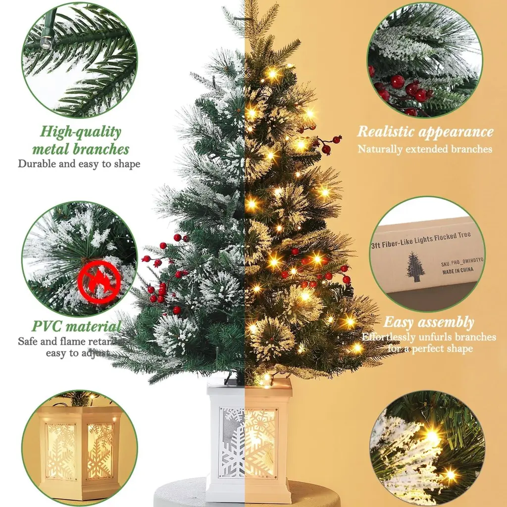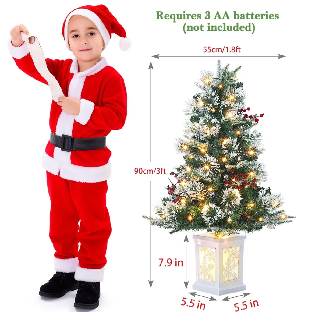 【Realistic Appeal】Our pre-lit artificial tree branches look incredibly realistic and lifelike. With elegant PVC foliage, it creates a atmosphere even without a white Christmas in the forecast. 【Multiple Lighting Modes】This 3FT Christmas tree comes with a 3*AA battery box (batteries not included) and features 8 lighting modes: Combination/In wave/Sequential/Slo glo/Chasing/Slow fade/Twinkle/Steady on. With 2700K LED bulbs, it stays lit even if one bulb burns out, designed for durability. Our tested and hypo-allergenic needles are fire-resistant. 【Timer Setting】The battery box with 70 LED lights on this Christmas tree string comes with a timer function that automatically turns off 6 hours after turning on and stays off for 18 hours. Set it to turn on at the same time every day, saving energy in the early morning and bringing a cozy effect at night, freeing your hands. 【Sturdy Pot Stand】For your convenience, the pot base of the 3-foot artificial tree is made of cement, with the tree sitting in an attractive clear lightbox that doesn't expose the cement, making it easy to place anywhere in your home. 【 Materials】This tree is made from sturdy, high-quality, low-allergenic, fire-resistant needle tips, with hundreds of individually molded "Feel Real" tree branches that create a full-bodied appearance and a lifelike look and feel. This tree is built to bring holiday joy for years to come.