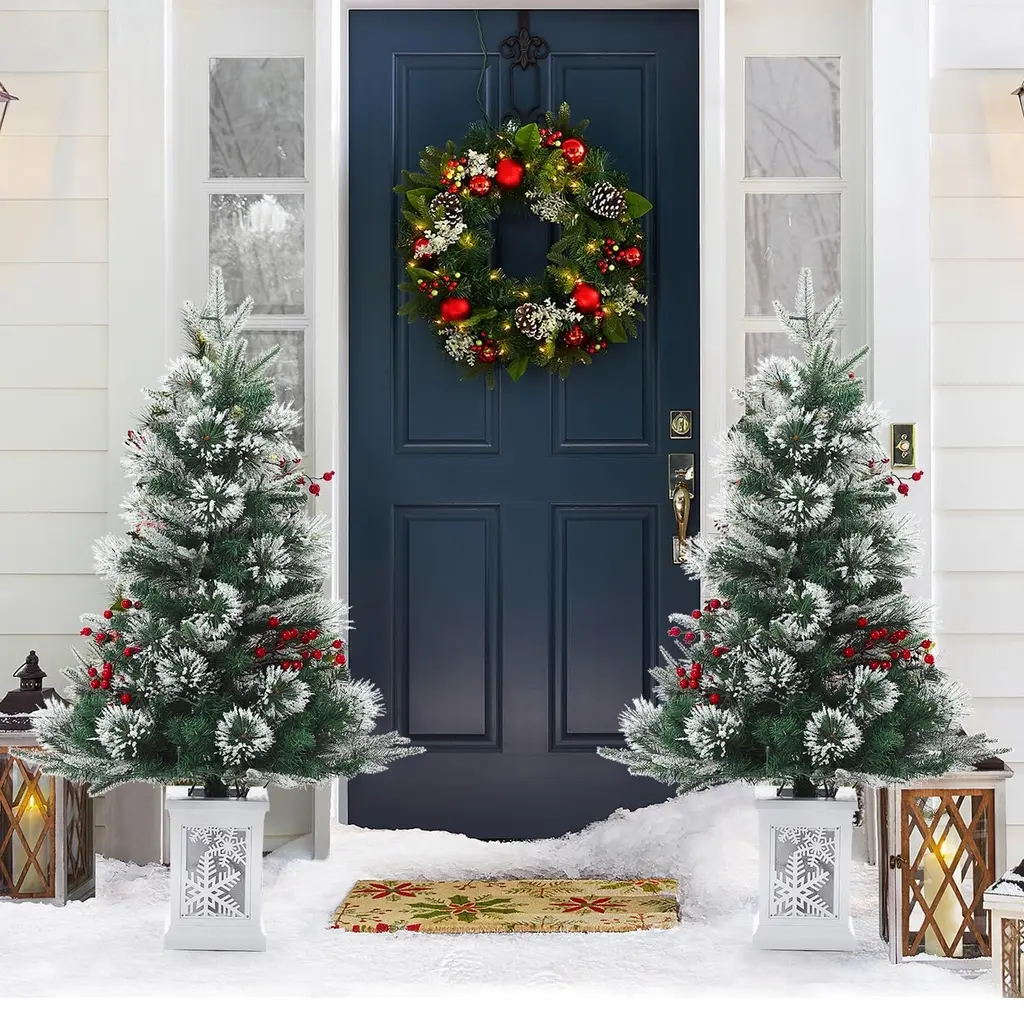 2Pcs 3 Ft Mini Christmas Tree With Premium 70 Warm White Led, 8 Mode Xmas Pine Tree - 21.6x21.6x36in - Green