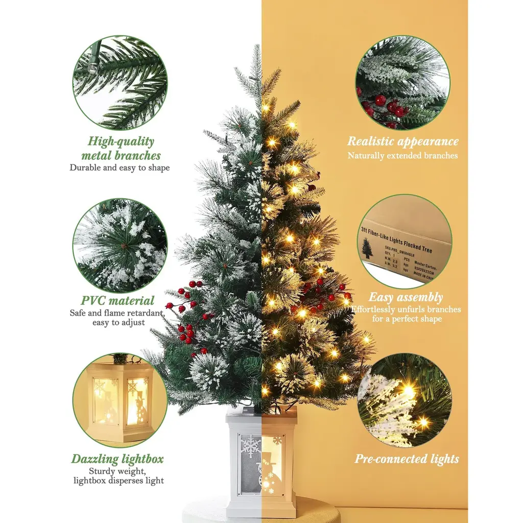 【Realistic Appeal】Our pre-lit artificial tree branches look incredibly realistic and lifelike. With elegant non-toxic PVC foliage, it creates a snowy atmosphere even without a white Christmas in the forecast. 【Multiple Lighting Modes】This 3FT Christmas tree comes with a 3*AA battery box (batteries not included) and features 8 lighting modes: Combination/In wave/Sequential/Slo glo/Chasing/Slow fade/Twinkle/Steady on. With 2700K LED bulbs, it stays lit even if one bulb burns out, designed for durability. Our tested and hypo-allergenic needles are fire-resistant. 【Timer Setting】The battery box with 70 LED lights on this Christmas tree string comes with a timer function that automatically turns off 6 hours after turning on and stays off for 18 hours. Set it to turn on at the same time every day, saving energy in the early morning and bringing a cozy effect at night, freeing your hands. 【Sturdy Pot Stand】For your convenience, the pot base of the 3-foot artificial tree is made of cement, with the tree sitting in an attractive clear lightbox that doesn't expose the cement, making it easy to place anywhere in your home. 【Durable Materials】This tree is made from sturdy, high-quality, low-allergenic, fire-resistant needle tips, with hundreds of individually molded "Feel Real" tree branches that create a full-bodied appearance and a lifelike look and feel. This tree is built to bring holiday joy for years to come. 【Premium After-Sales】Designed for both indoor and outdoor use, easy assembly - simply take the tree out of the box, adjust the branches, and insert the batteries for instant decoration. Each product measures: 22"D x 22"W x 36"H, weight: 6.4 lbs. If you have any questions, feel free to contact us and we'll provide you with premium after-sales service. :)