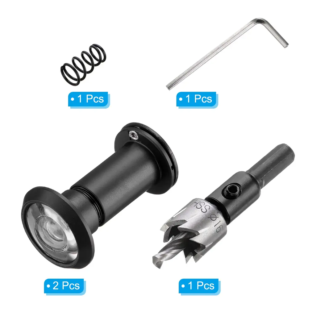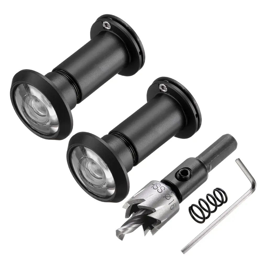 Stylish designed door viewer peepholes consisting of HD lens provides 200 degree view area and crystal clear panoramic view. It is an essential security addition for homes, offices and hotels, suitable for homes, apartments, hotels and any situation where you need to check the situation outside the door before opening it.SpecificationColor: Red BrushedMaterial: Zinc AlloyDiameter Hole: 16-21mm/0.63"-0.83"Door Thickness: 35-60mm/1.38"-2.36"Minimum Height: 3.5cm/1.38", Maximum Stretched Height: 6cm/2.36"Door Viewer Diameter: 1.6cm/ 5/8"WxL: 3x3cm/1.18x1.18"Drill Depth: 16mm/0.63", Drill Bit Size: 70x16mm/2.76"x0.63"Packing List: 2Pcs Door Viewer Peephole, 1Pcs M35 High-Speed Steel Drill Bit with Spring, 1Pcs Hex Wrench, 1Pcs Storage BoxAdvantageThe door peephole viewer is made of durable zinc alloy, and the stylish modern design matches your existing hardware and decoration, blending perfectly with a variety of doors.The door viewer is designed with a 360-degree rotating privacy cover, which can take good care of the safety of you and your family.InstructionComes with a 16 mm (5/8 inch) drill bit, which is convenient for drilling and installing the Door peephole viewer.NOTE: Know the thickness of the door and the diameter of the hole. That will make it easy to choose and installed.