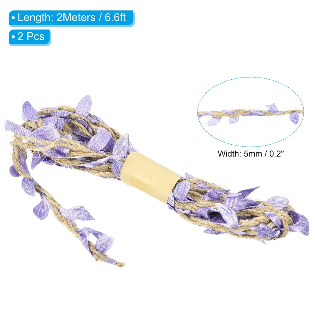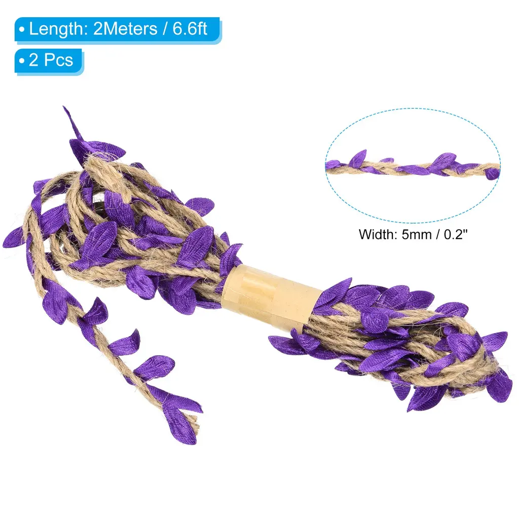 2Pcs 6.6ft 5Mm Burlap Leaf Ribbon Vine Natural Jute Rope Twine - Purple