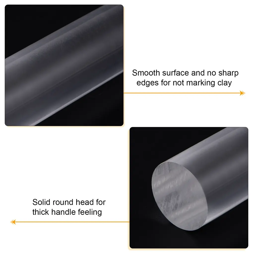 Material - Acrylic rods made from quality acrylic material, which is safe, sturdy and durable. Smooth surface with good water absorption for not sticking to mud. No sharp edges and won't mark clay.Feature - Polymer clay roller designed with a solid round head for thick handle feeling, wear-resistant and drop-resistant. Add texture to clay and can be used for sculpting, shaping, modeling and smoothing.Application - Suitable for various clay, foam, play dough handicraft production scenes, such as pottery, jewelry making, and more, to meet the needs of home and art studio. In addition, acrylic roller can also be used to make cakes, pasta, cookies, fondant, pizza, biscuits and other baking.